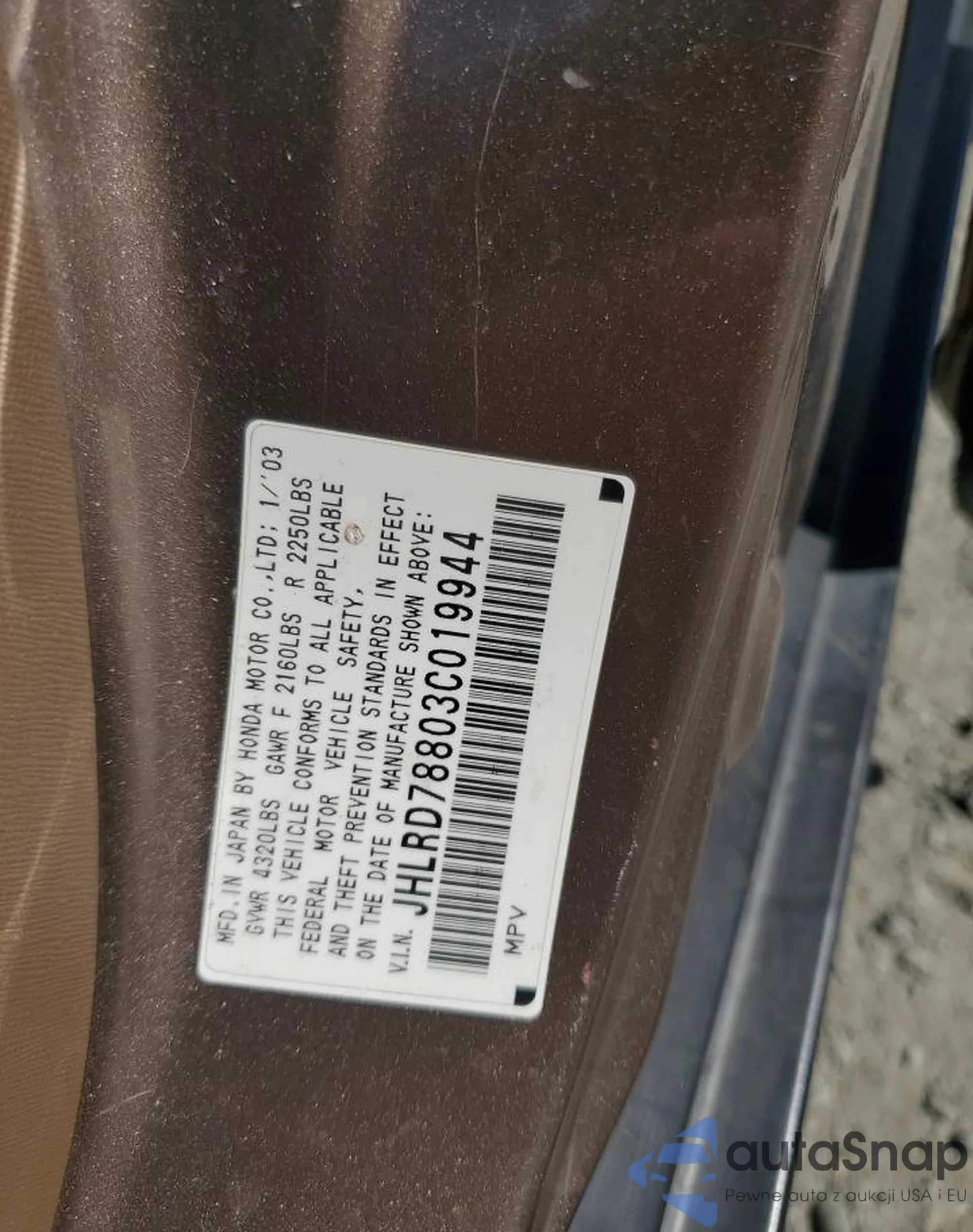 VIN: JHLRD78803C019944