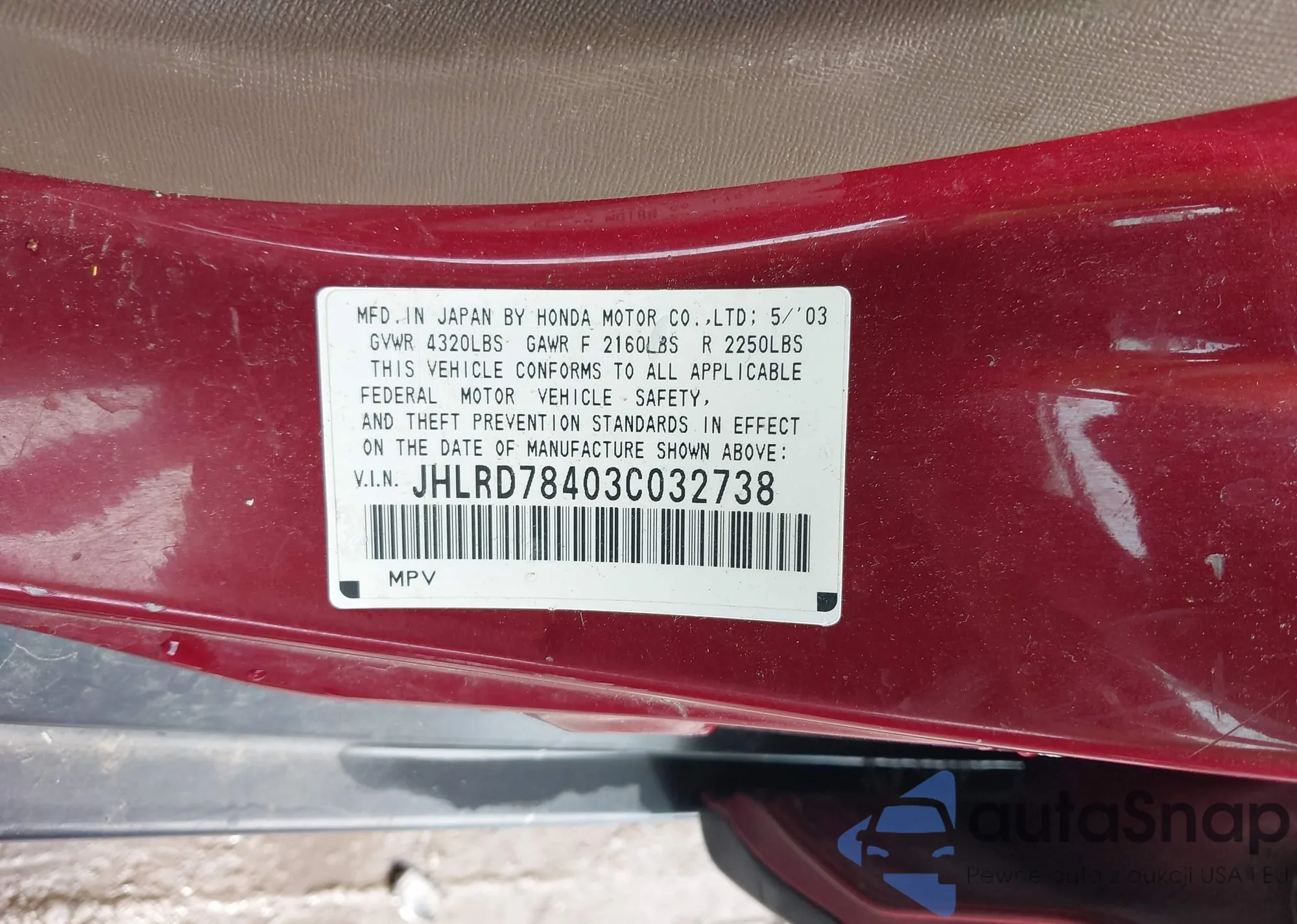 VIN: JHLRD78403C032738