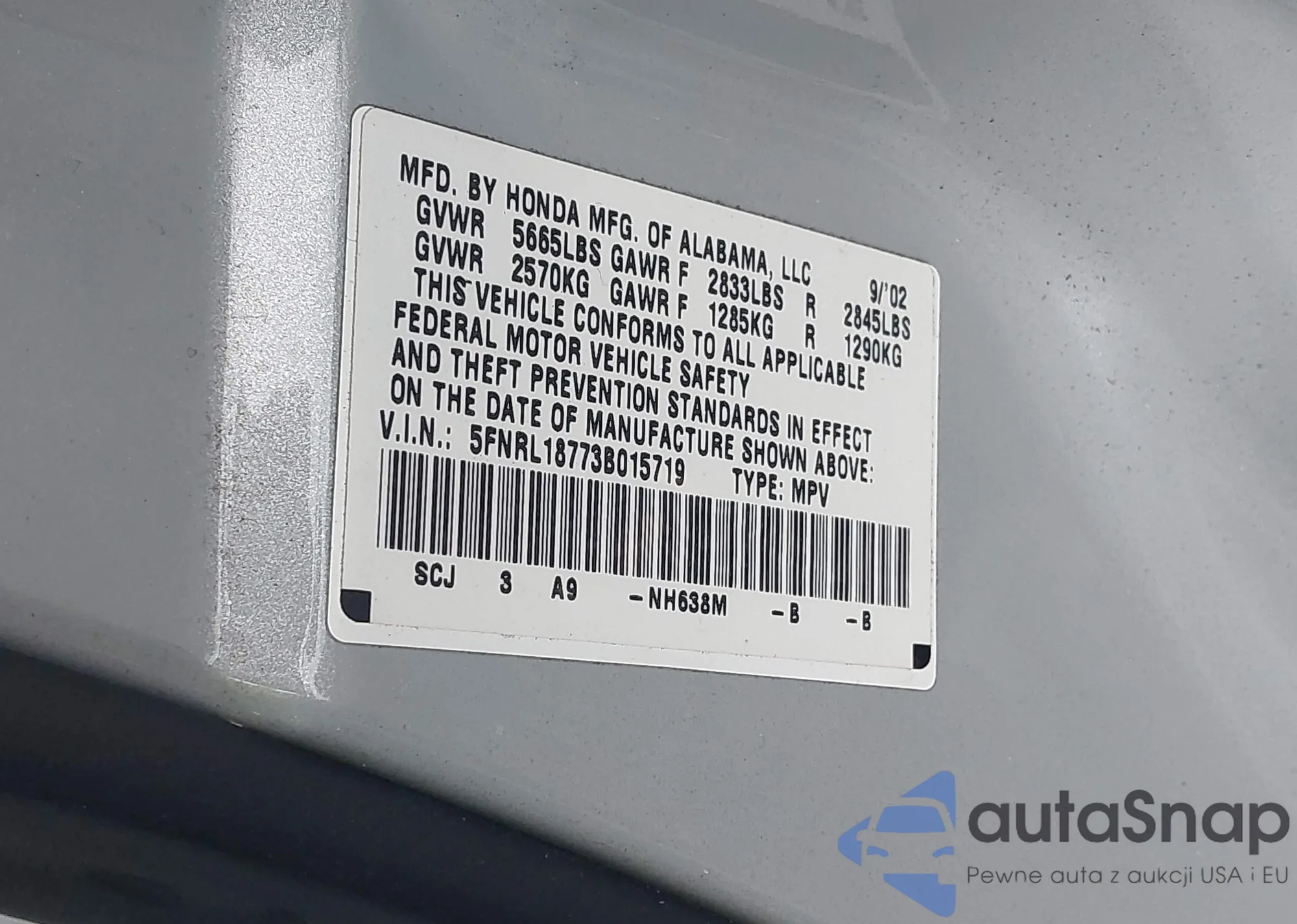 VIN: 5FNRL18773B015719