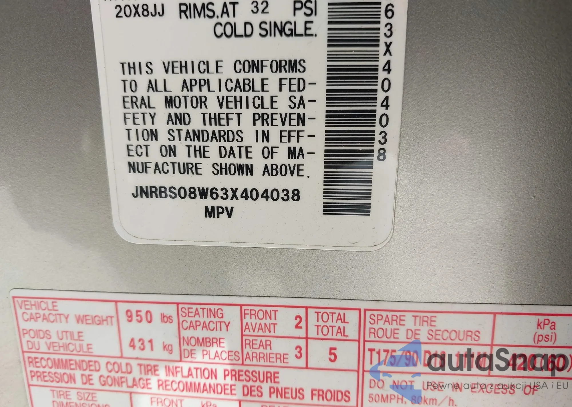 VIN: JNRBS08W63X404038