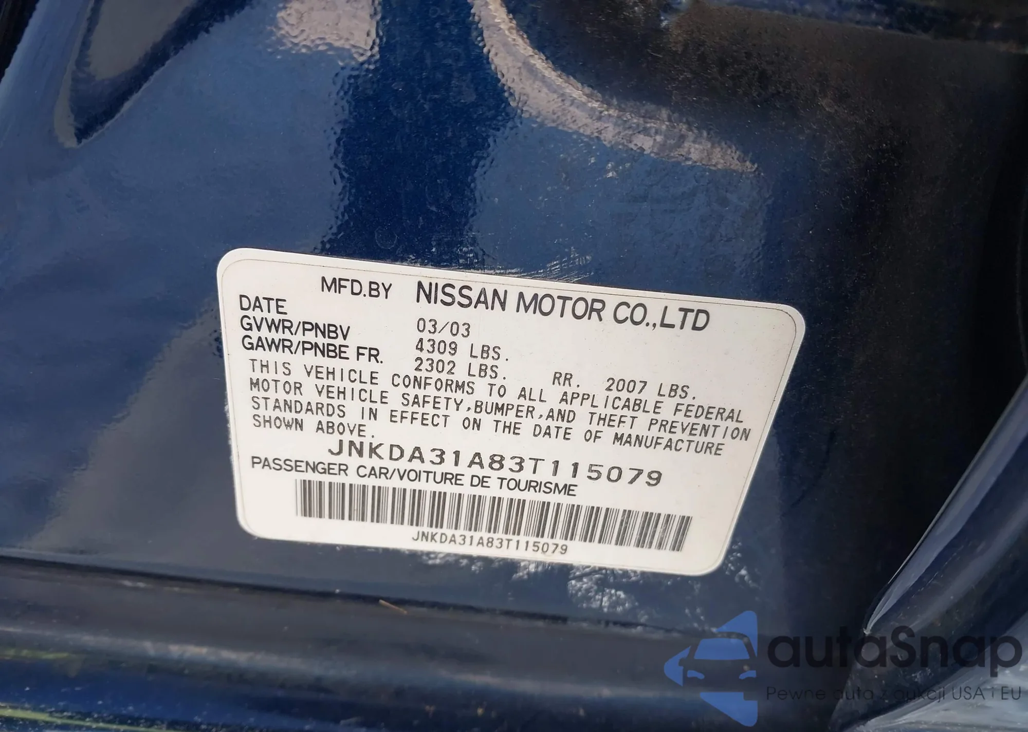 VIN: JNKDA31A83T115079