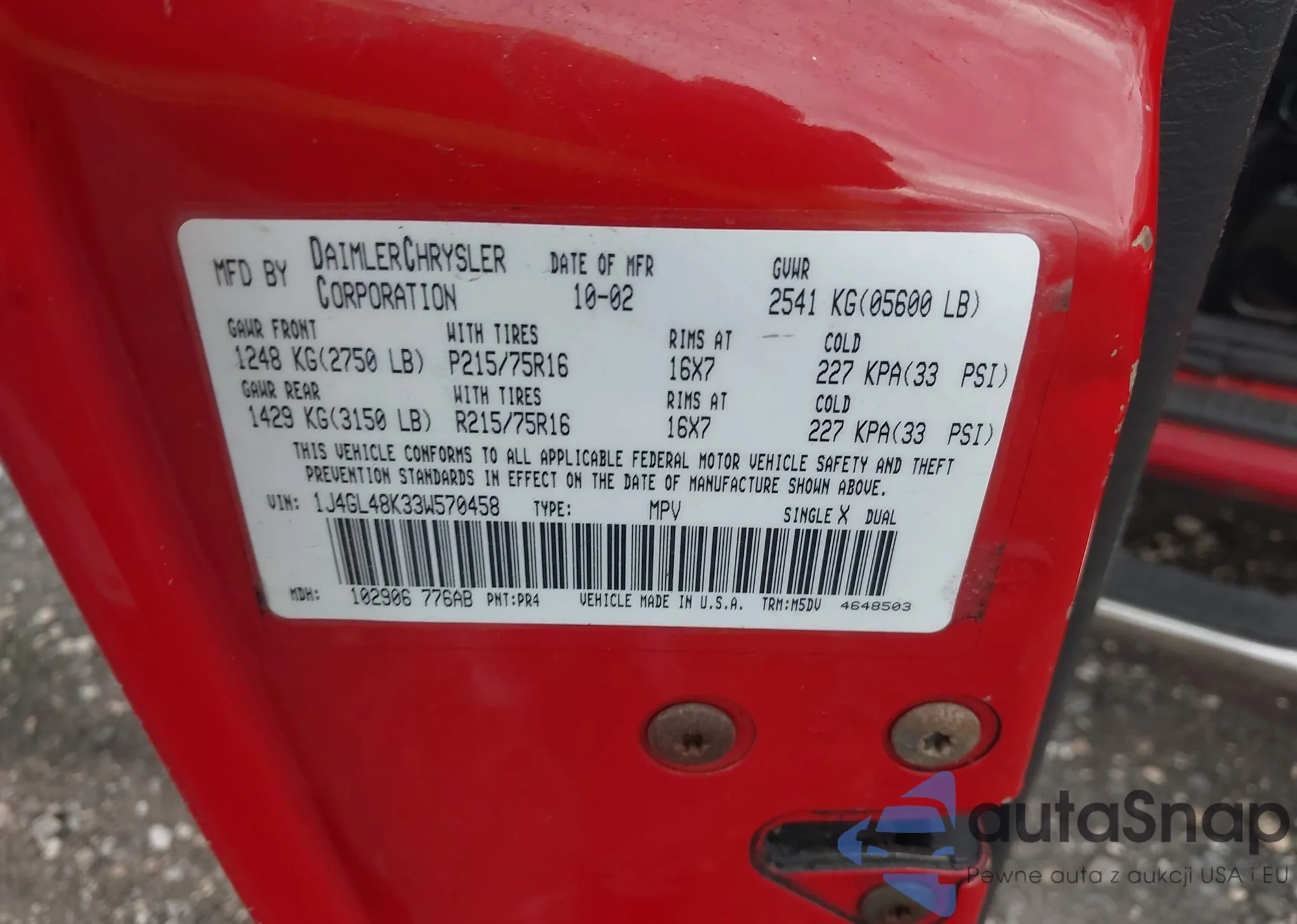 VIN: 1J4GL48K33W570458