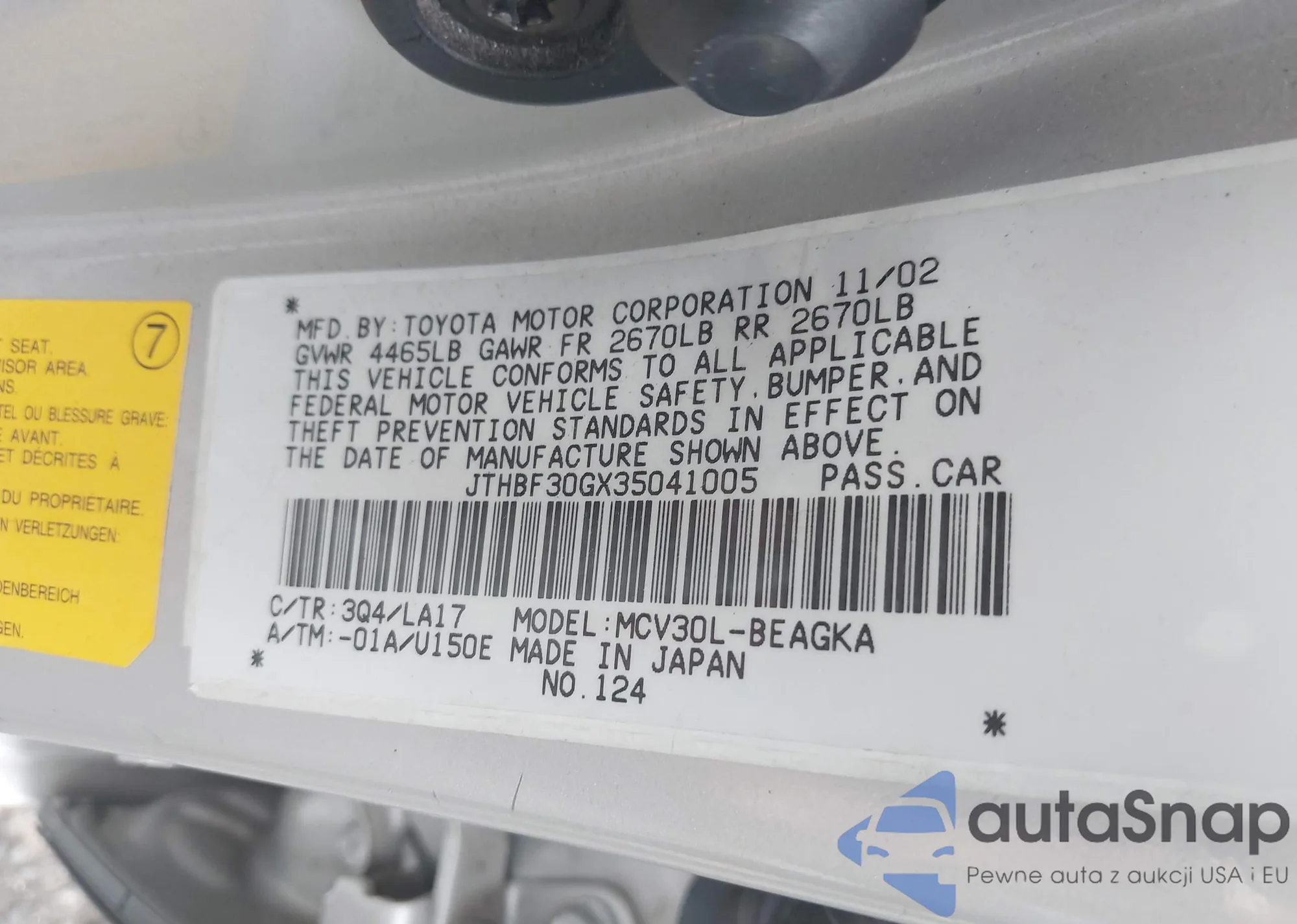 VIN: JTHBF30GX35041005