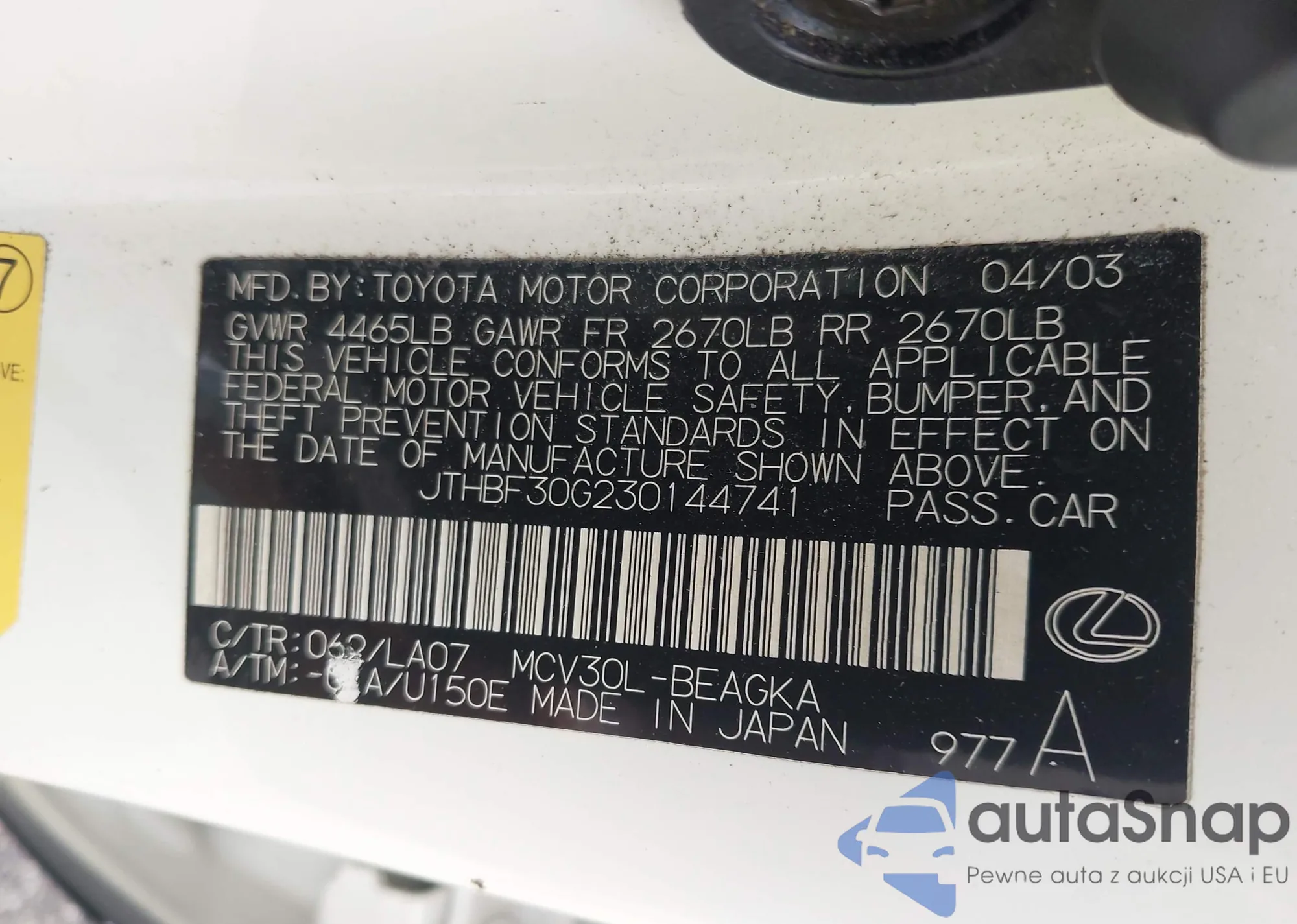 VIN: JTHBF30G230144741