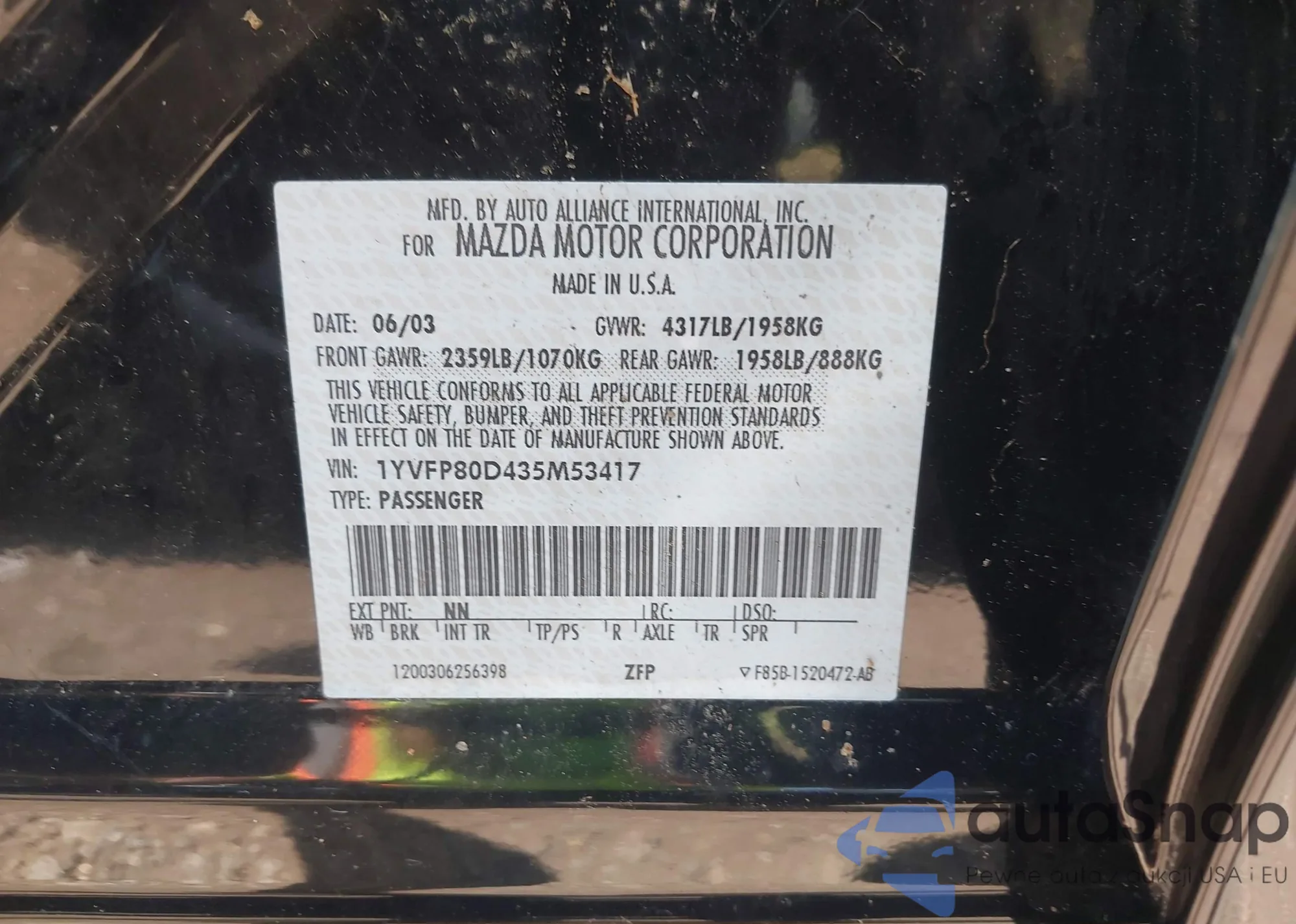 VIN: 1YVFP80D435M53417