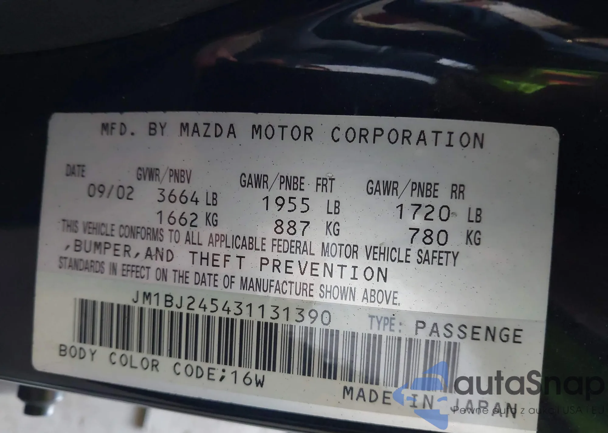 VIN: JM1BJ245431131390