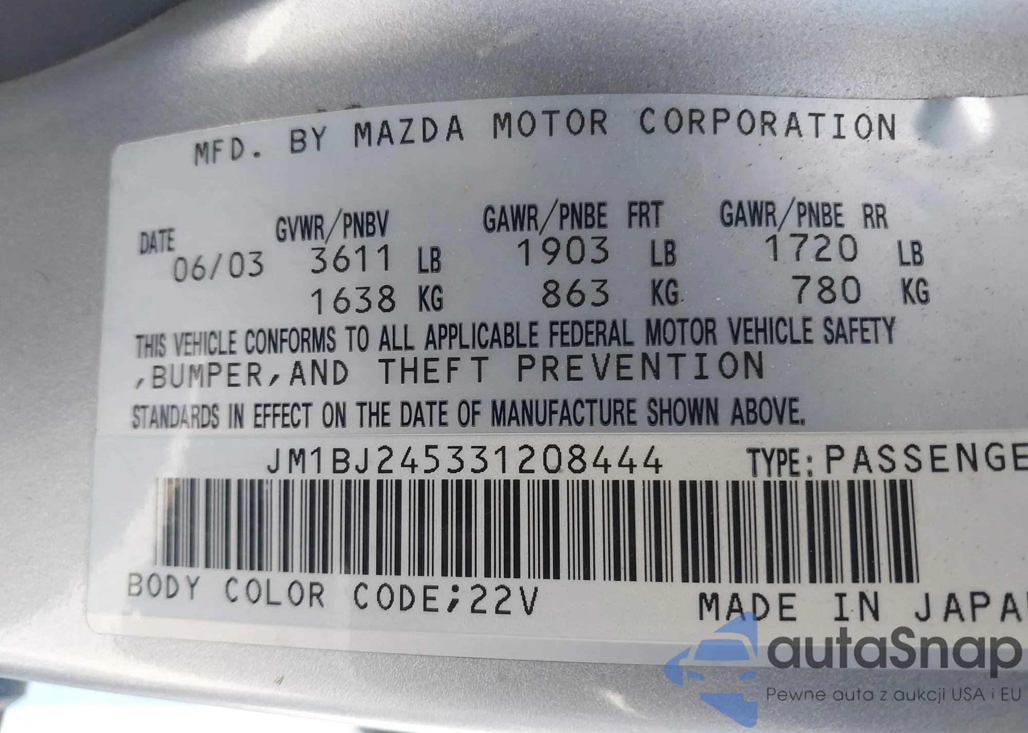 VIN: JM1BJ245331208444
