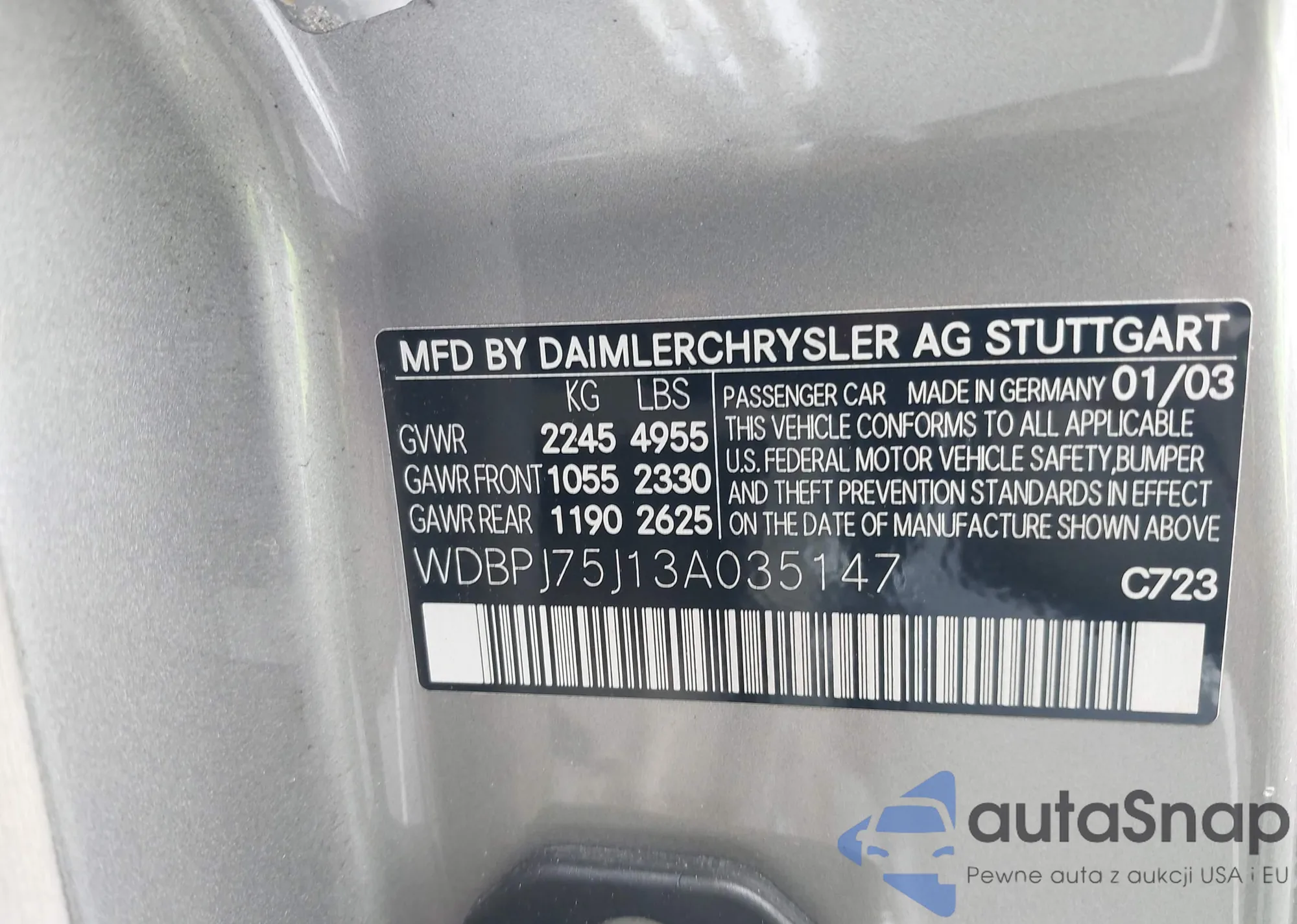 VIN: WDBPJ75J13A035147