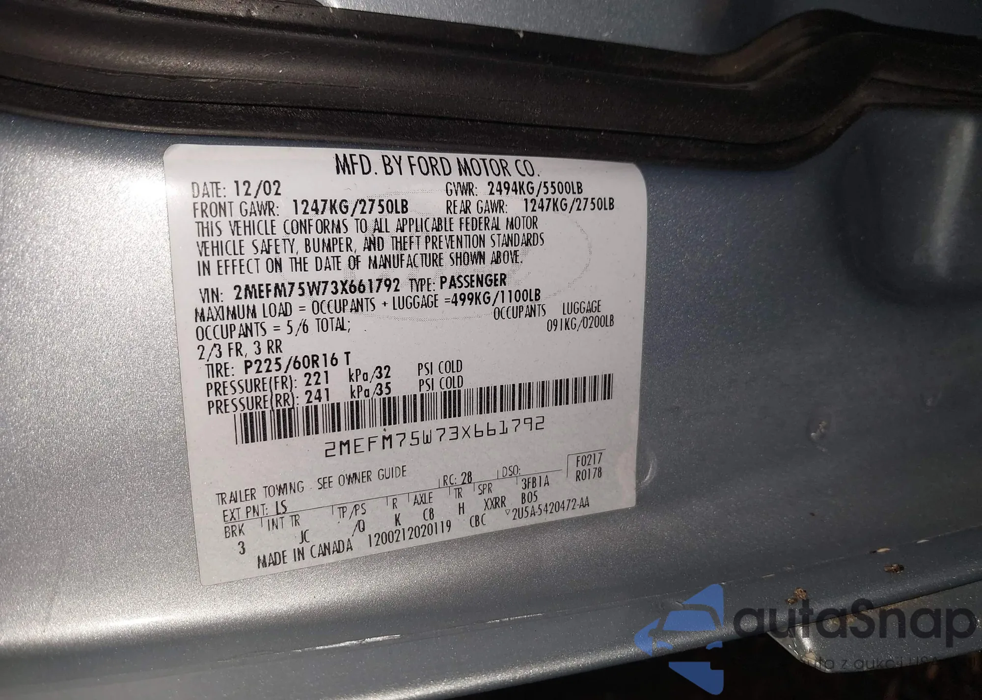 VIN: 2MEFM75W73X661792