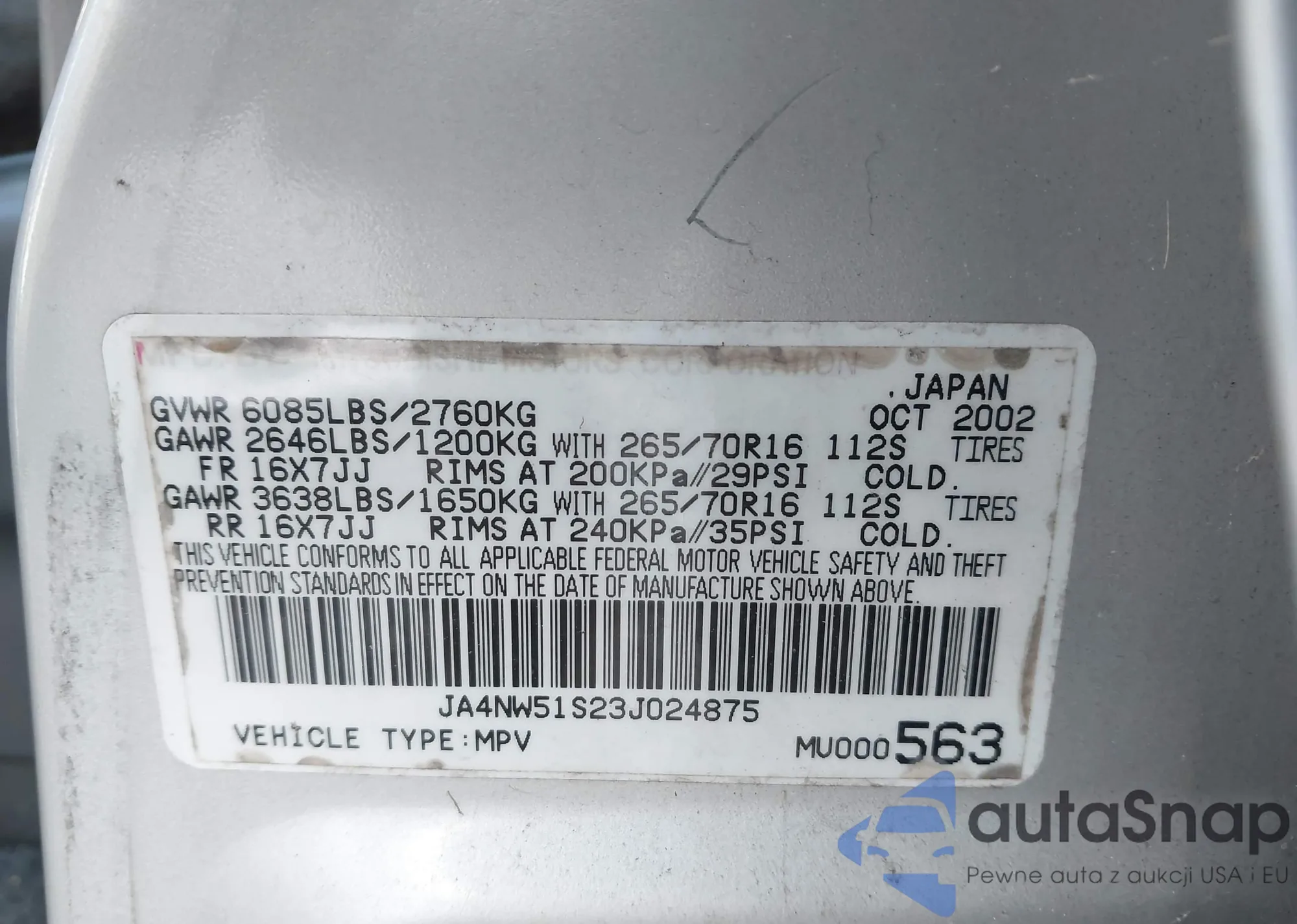 VIN: JA4NW51S23J024875