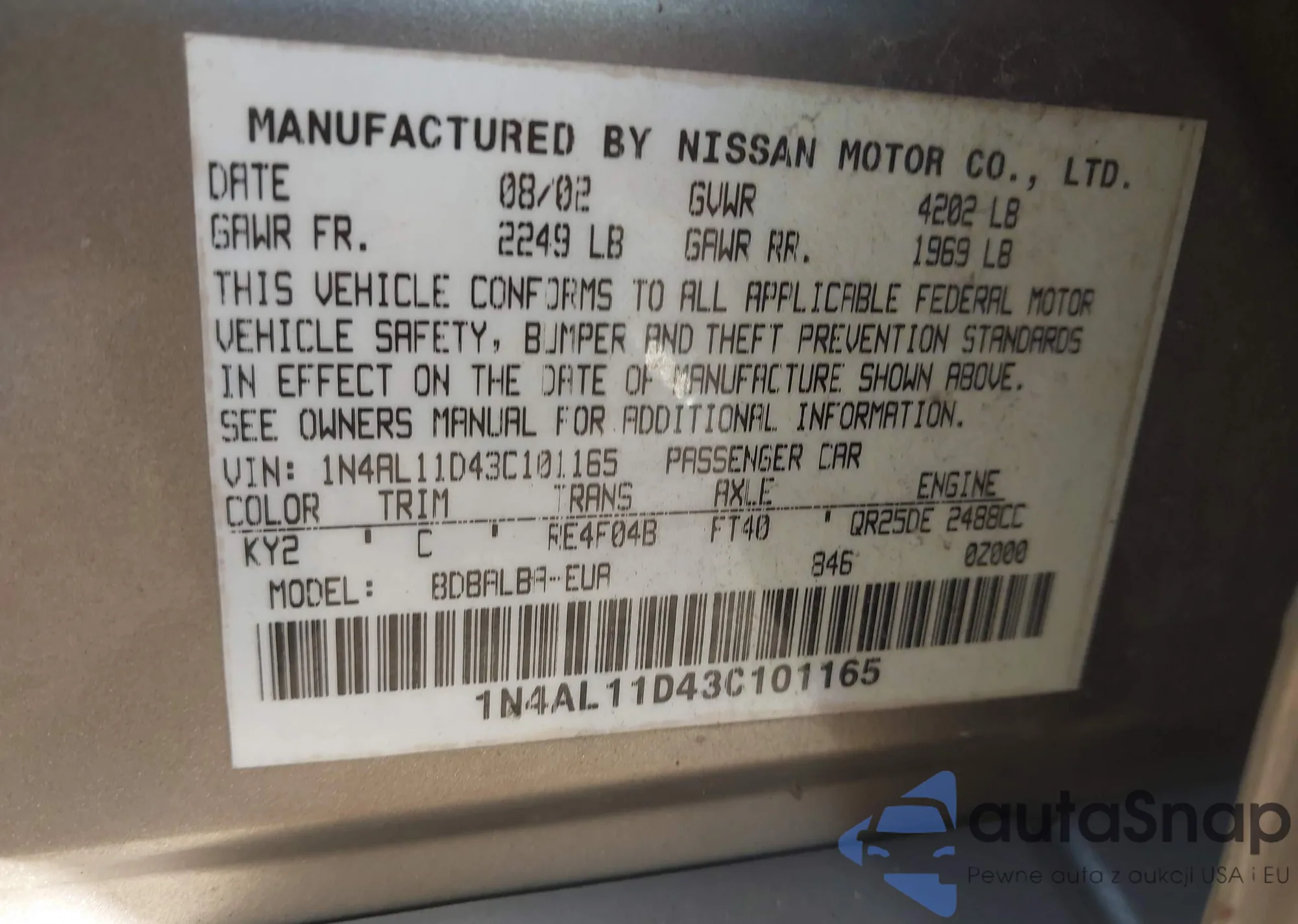 VIN: 1N4AL11D43C101165