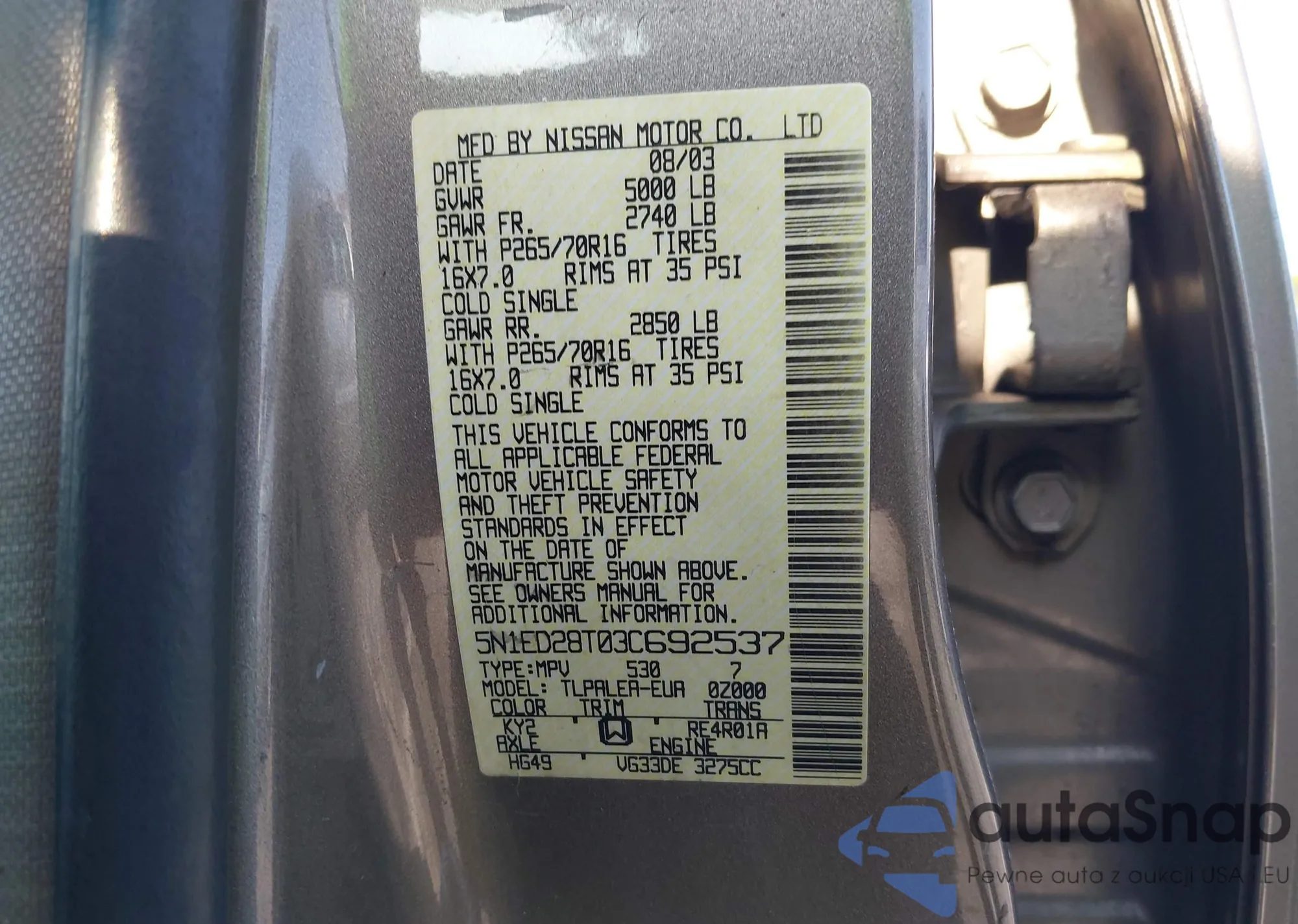VIN: 5N1ED28T03C692537