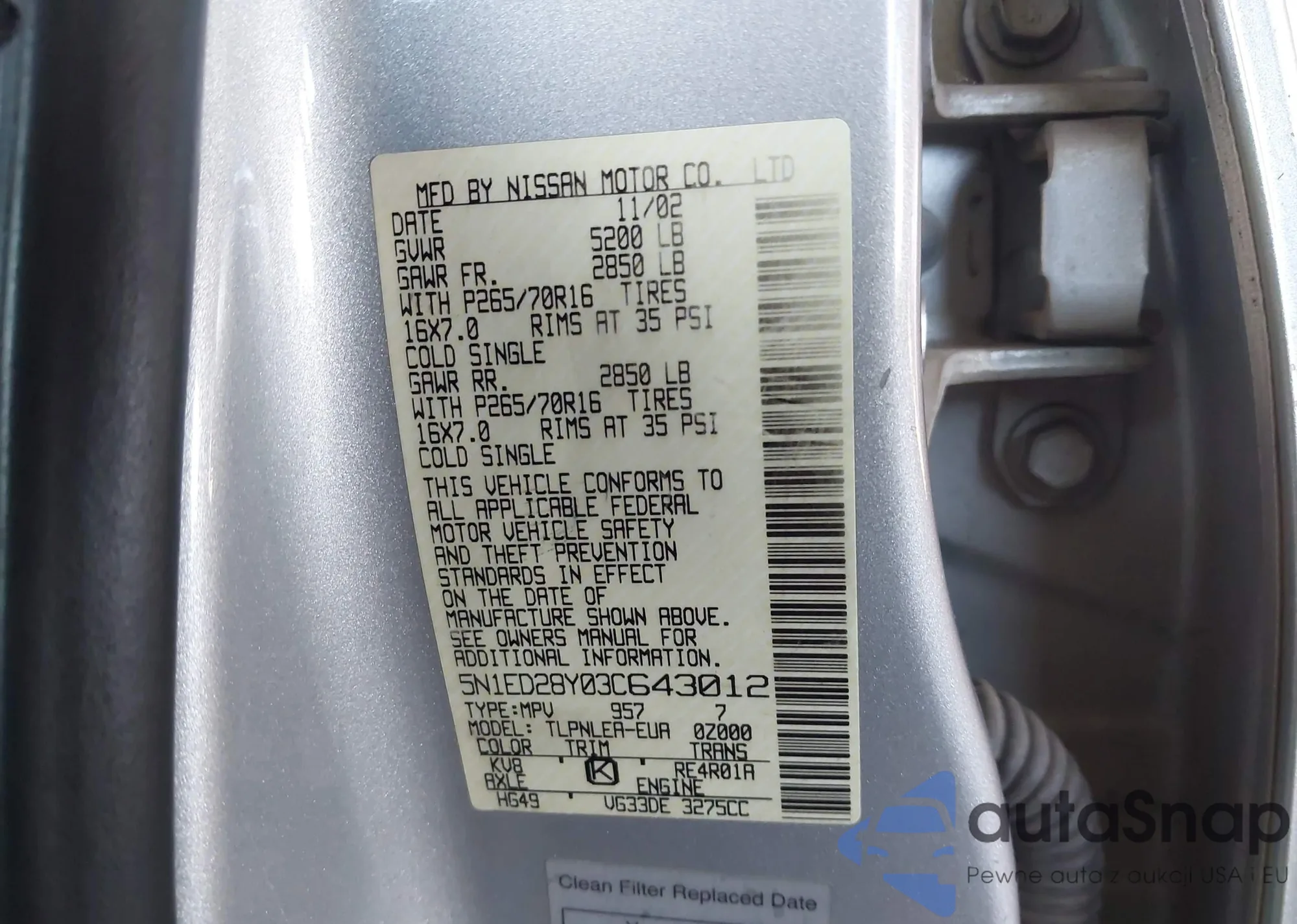 VIN: 5N1ED28Y03C643012