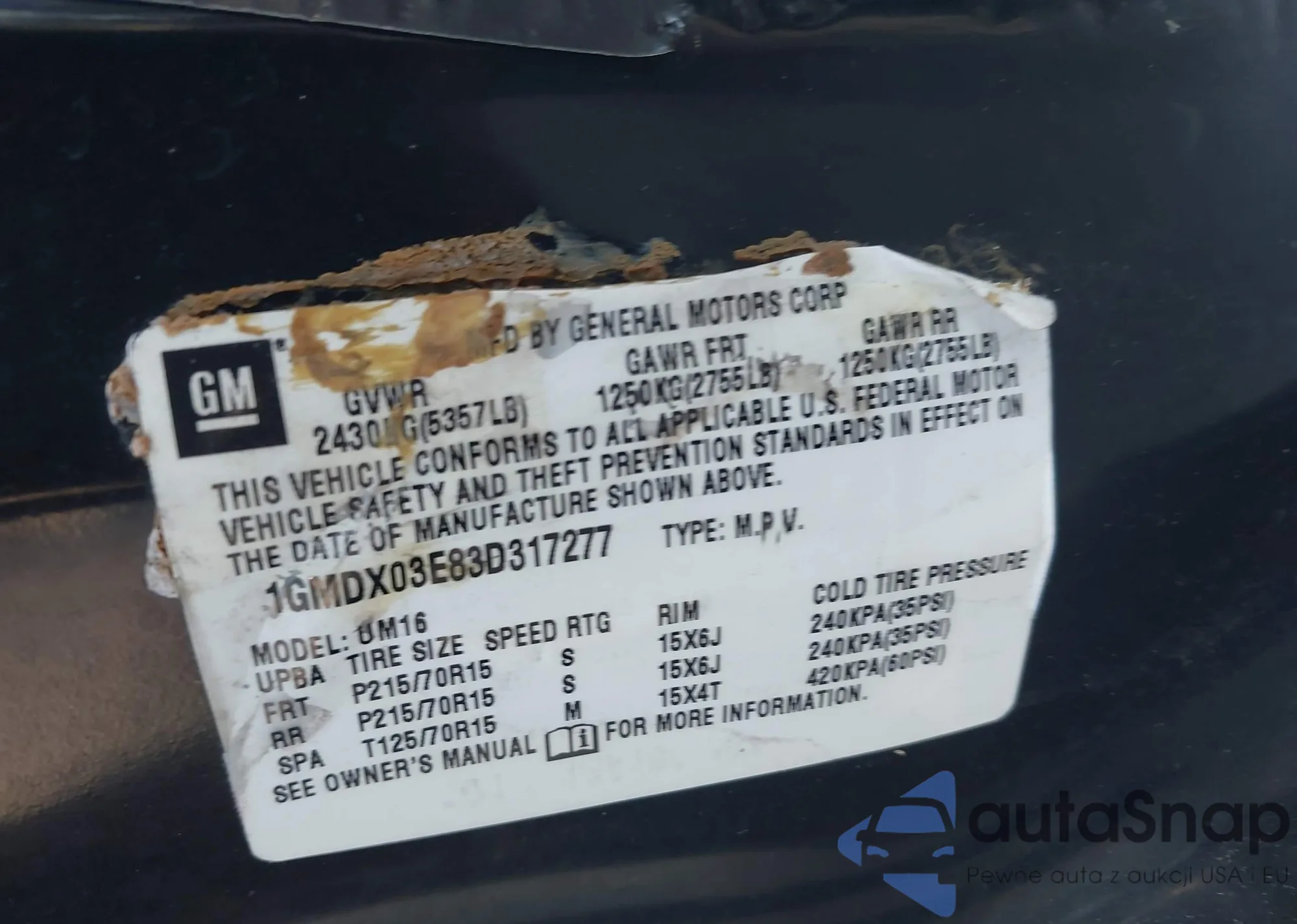 The car Pontiac Montana 2003 (VIN 1GMDX03E83D317277) has already been auctioned 0 times or is sold by an unverified seller. We recommend checking the Carfax report and confirming registration possibilities before purchase.