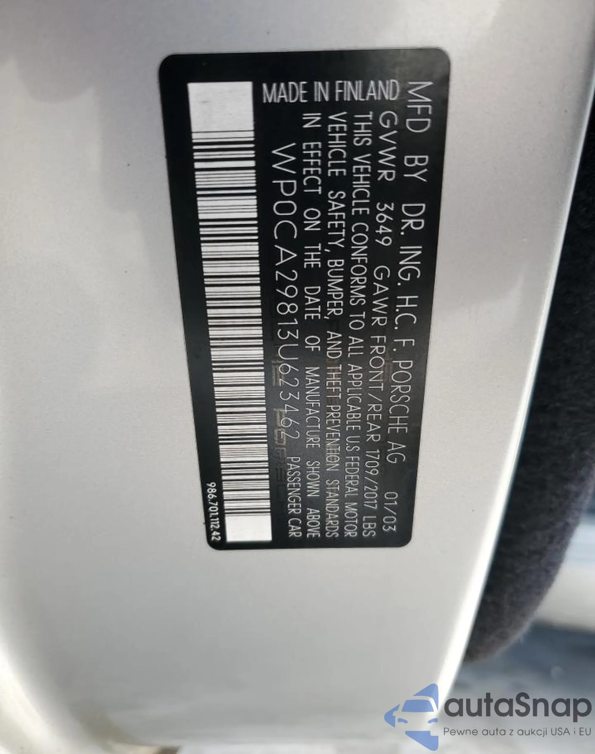 VIN: WP0CA29813U623462