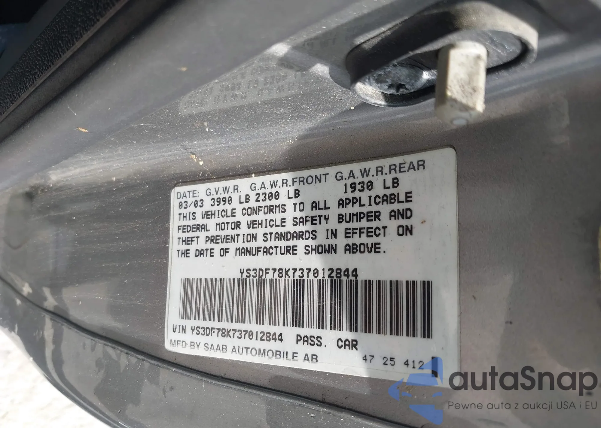 VIN: YS3DF78K737012844