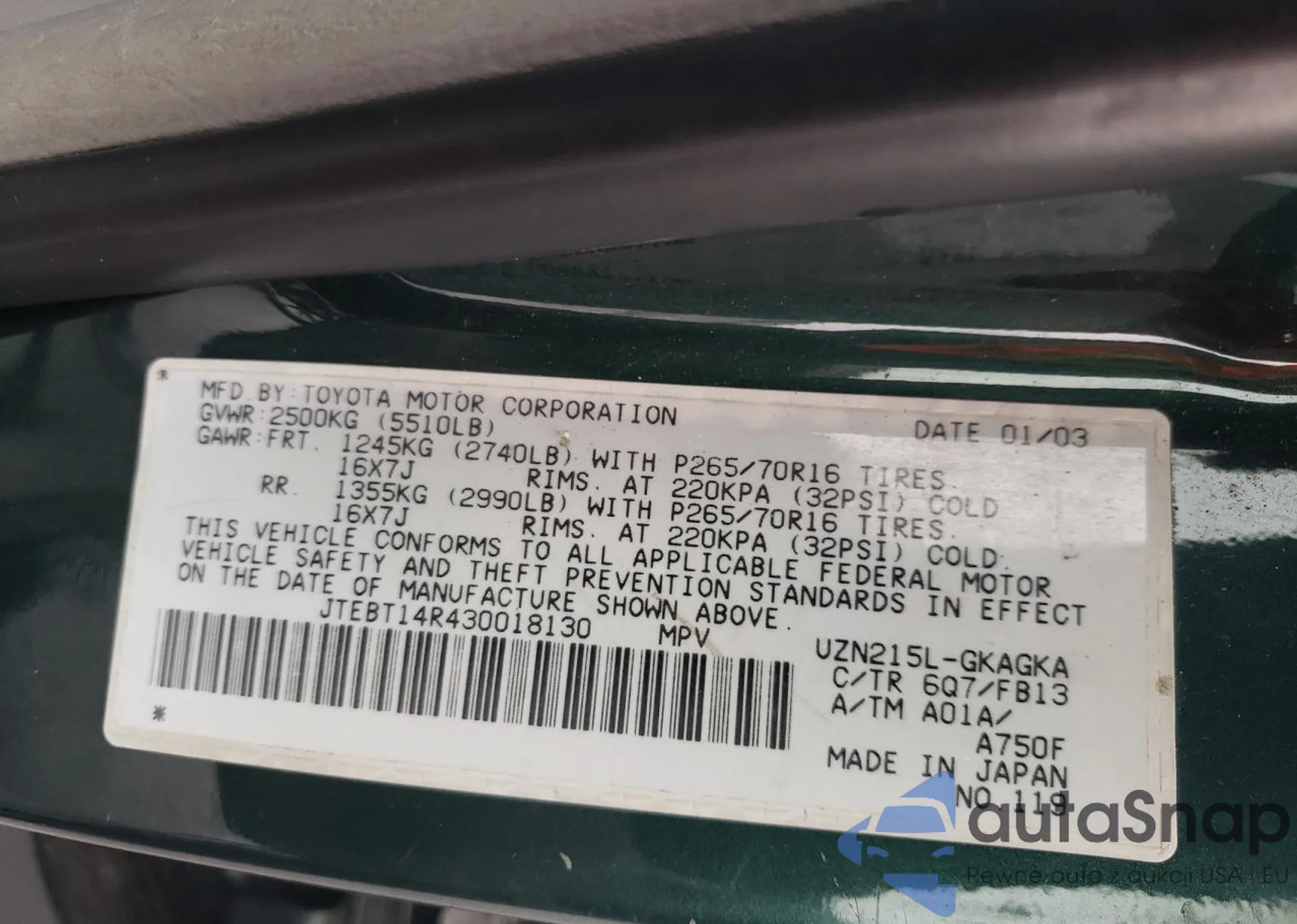 VIN: JTEBT14R430018130
