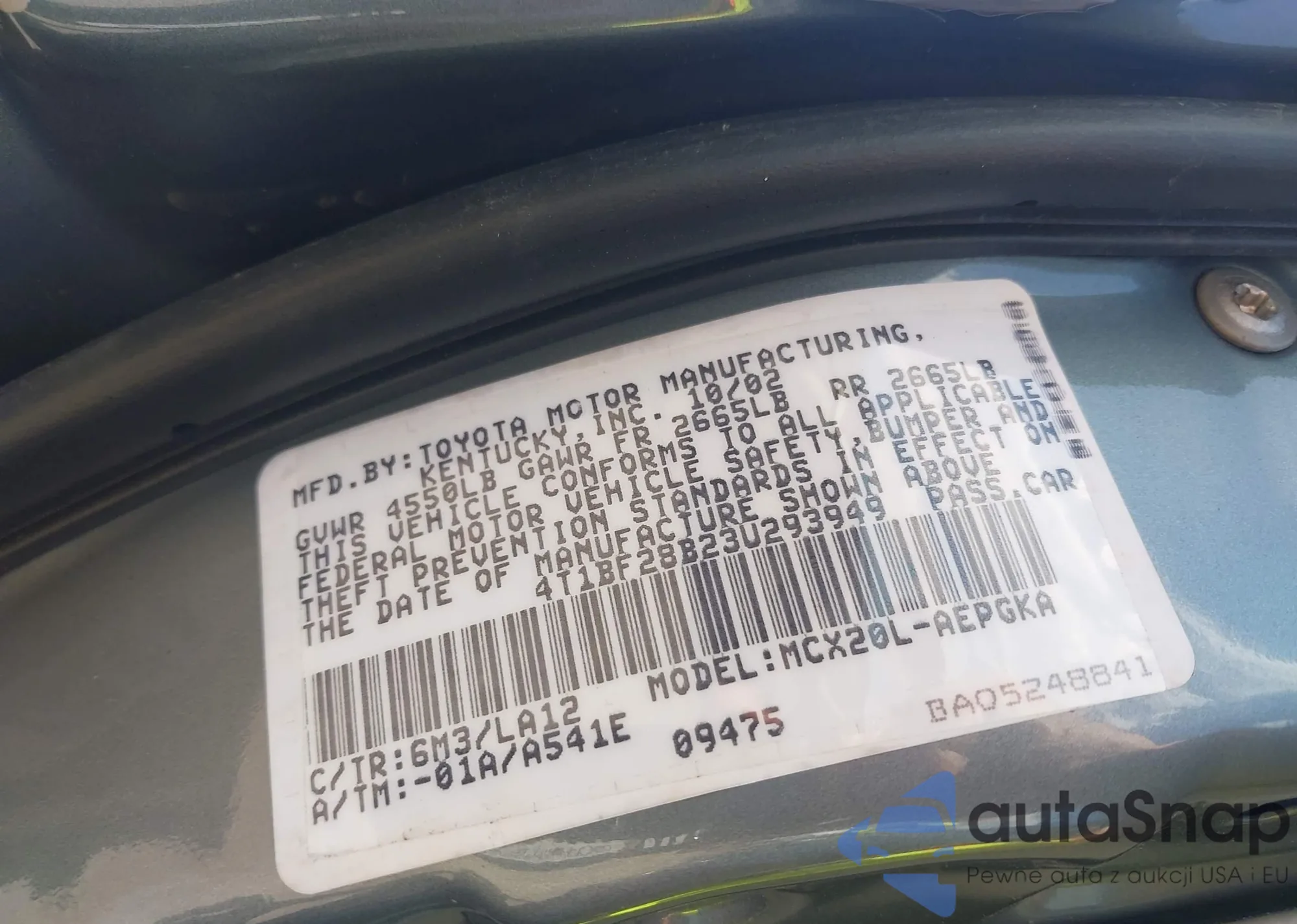 VIN: 4T1BF28B23U293949