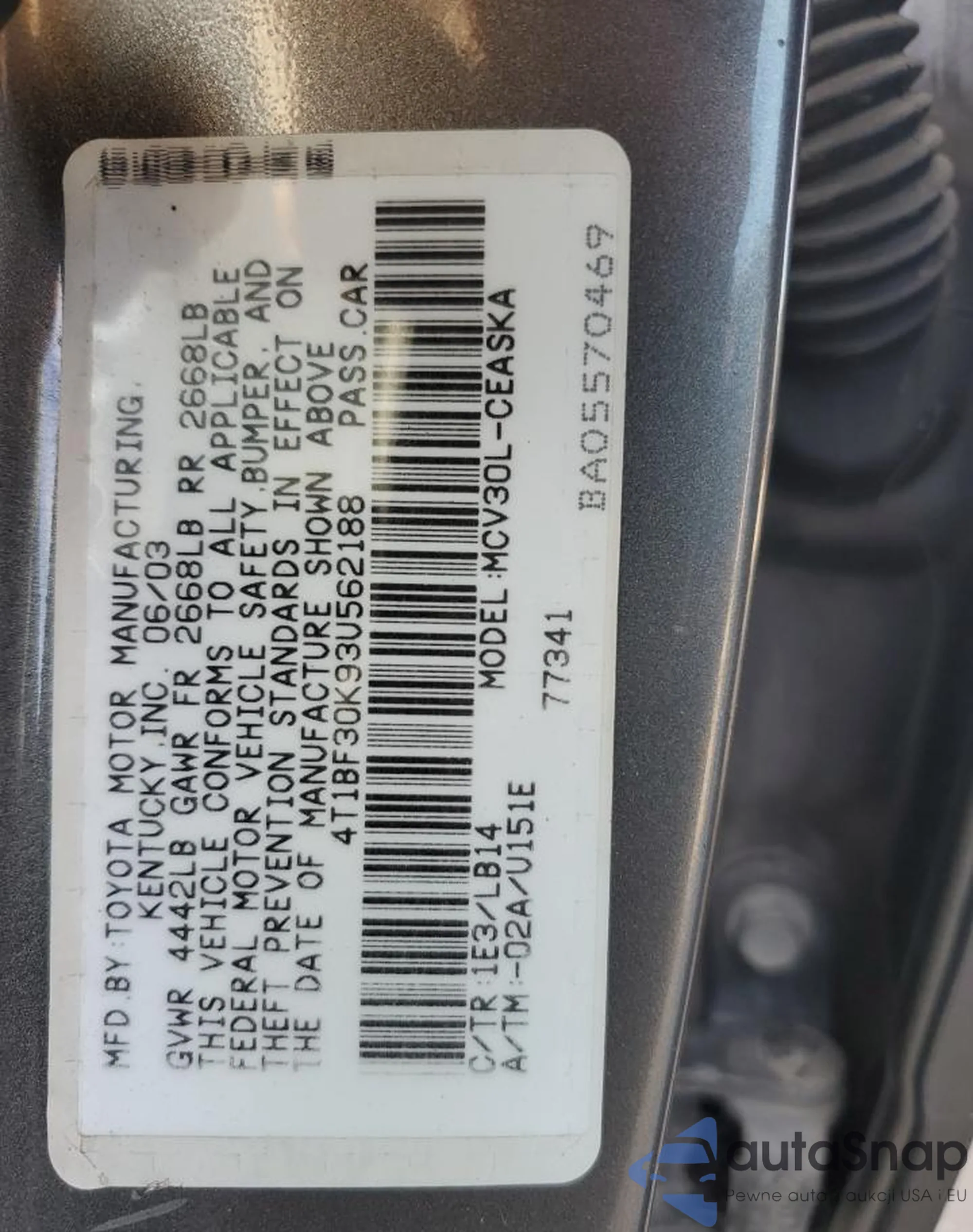 VIN: 4T1BF30K93U562188