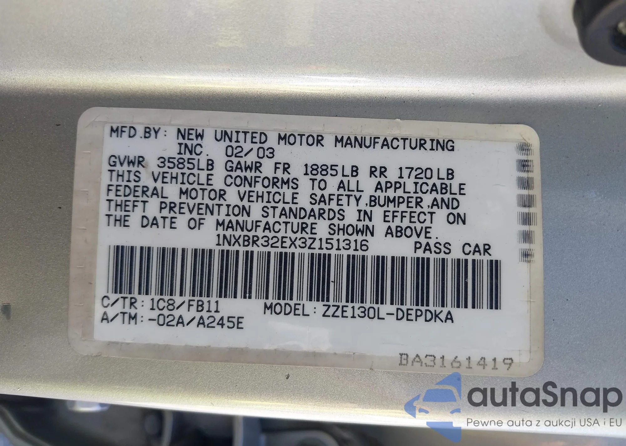 VIN: 1NXBR32EX3Z151316