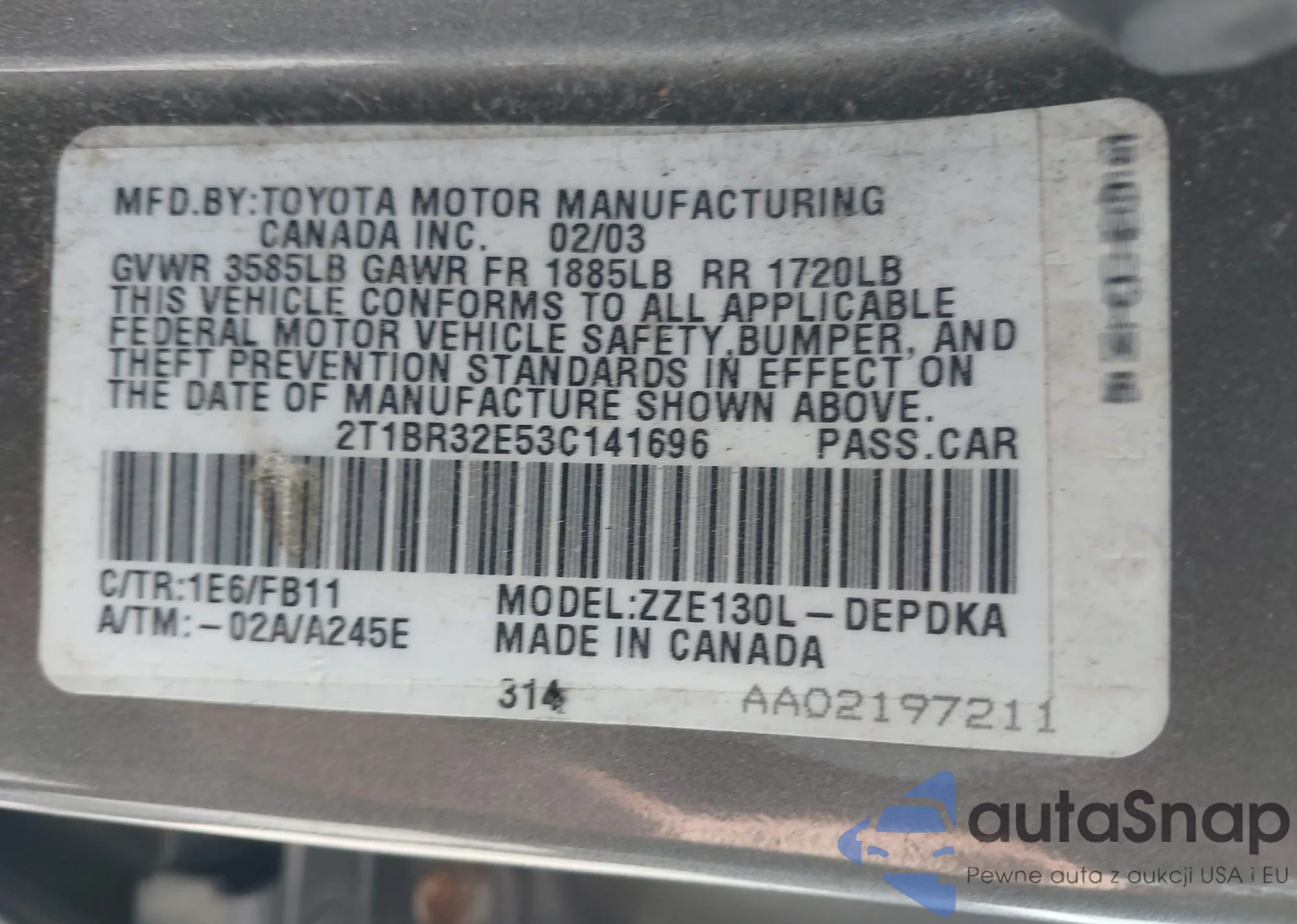 VIN: 2T1BR32E53C141696