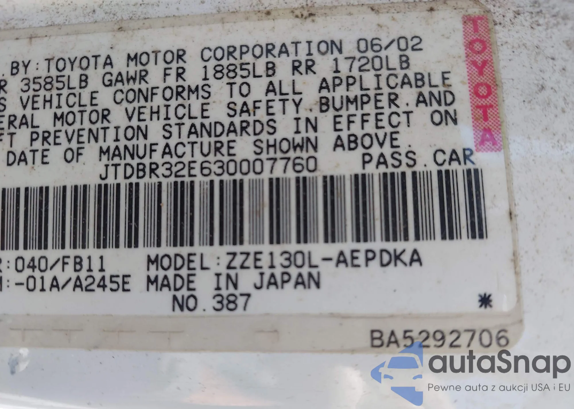 VIN: JTDBR32E630007760