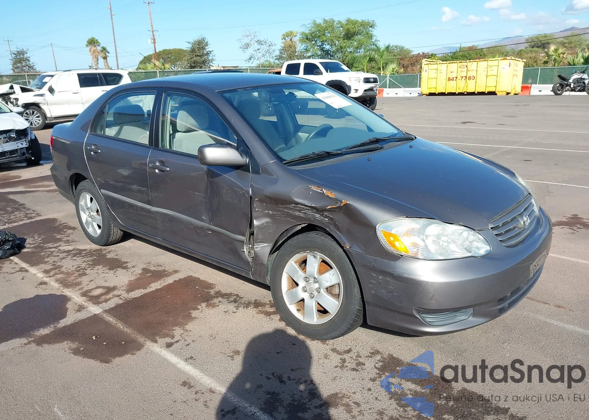 The car Toyota Corolla 2003 (VIN 1NXBR32E93Z021575) has not been auctioned before. The documents are clean, and the mileage matches or is below the market average. Sold by an insurance company – we recommend purchase. Delivery to the port will take approx. 6–8 weeks.
