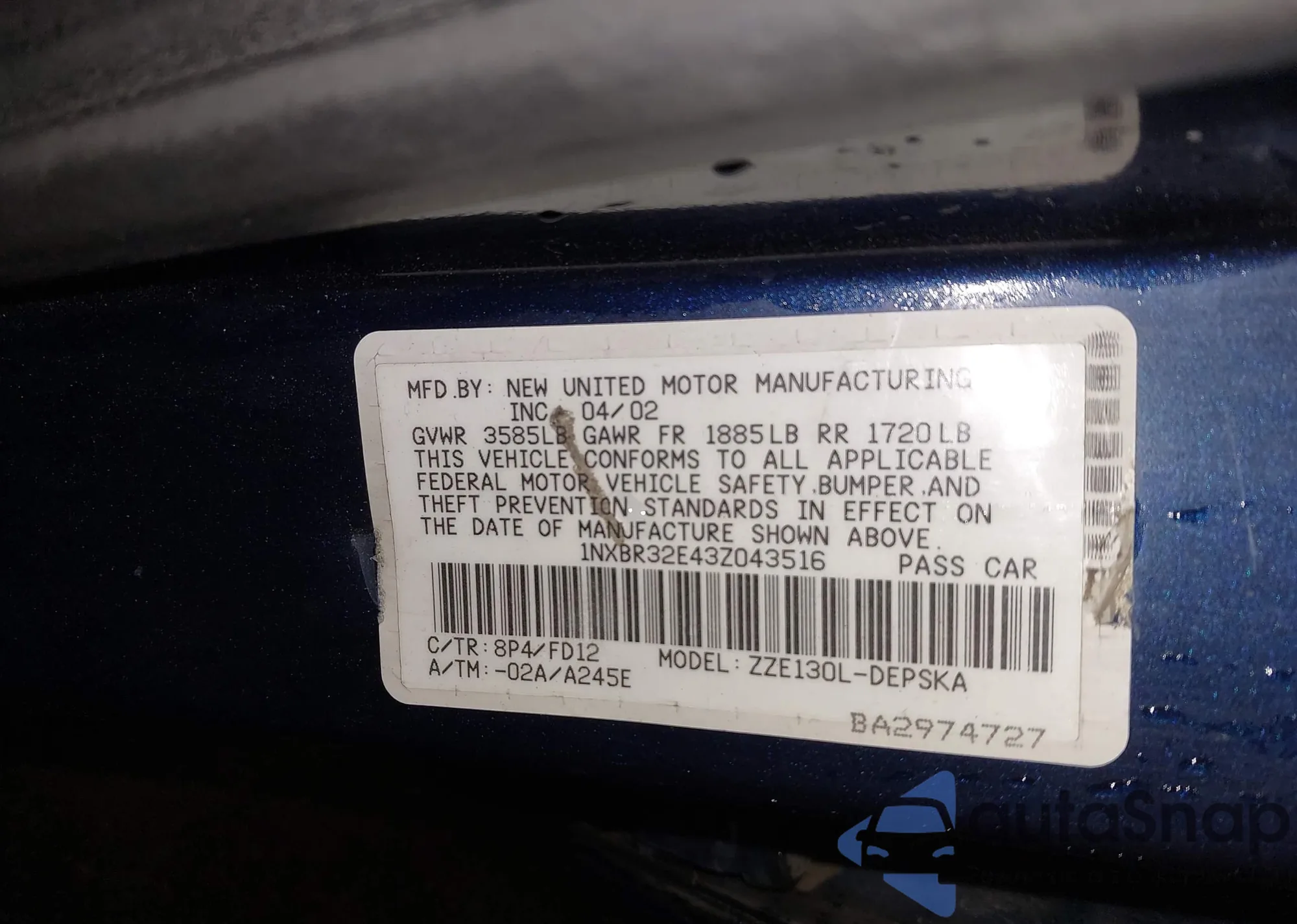 VIN: 1NXBR32E43Z043516