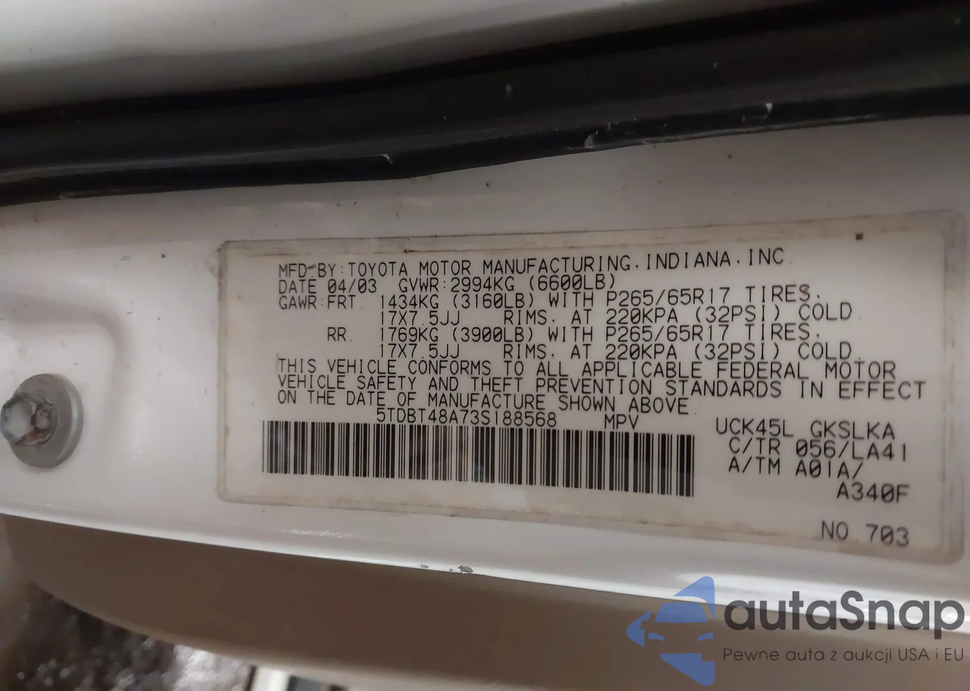 VIN: 5TDBT48A73S188568