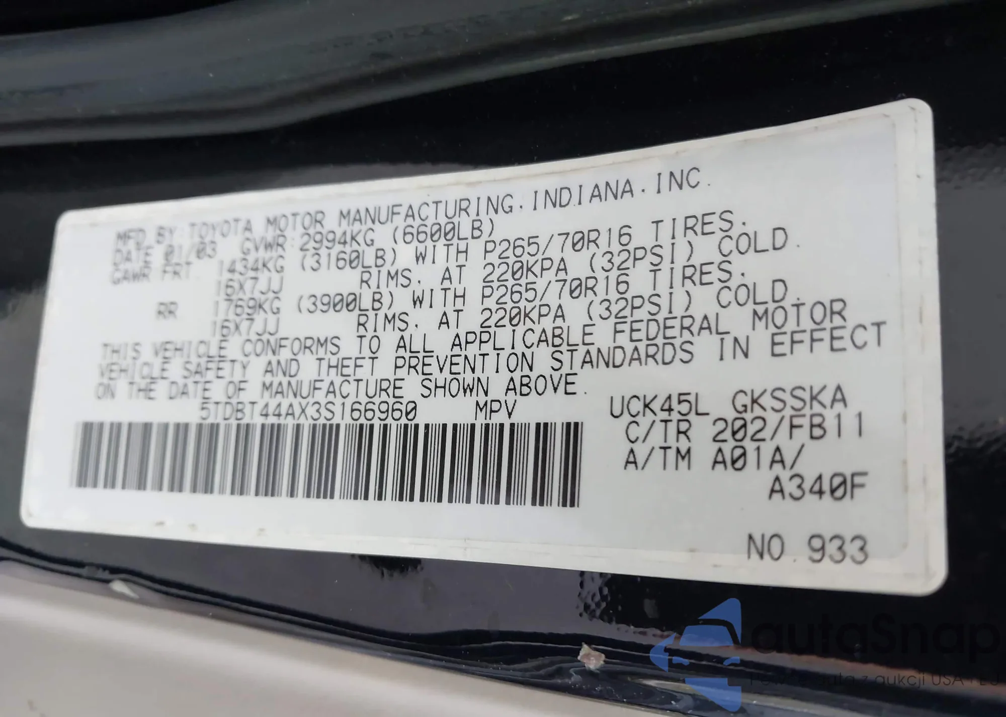 VIN: 5TDBT44AX3S166960
