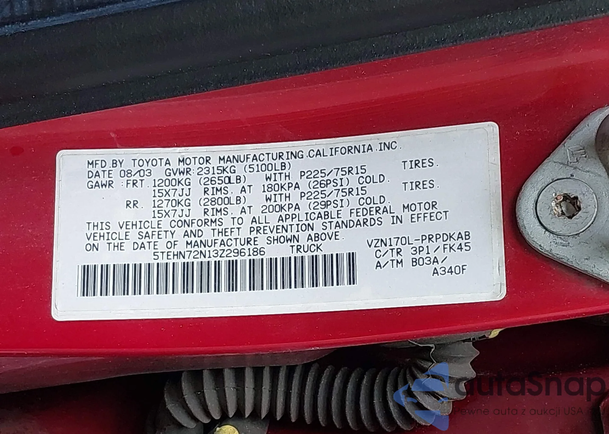 • VIN: 5TEHN72N13Z296186