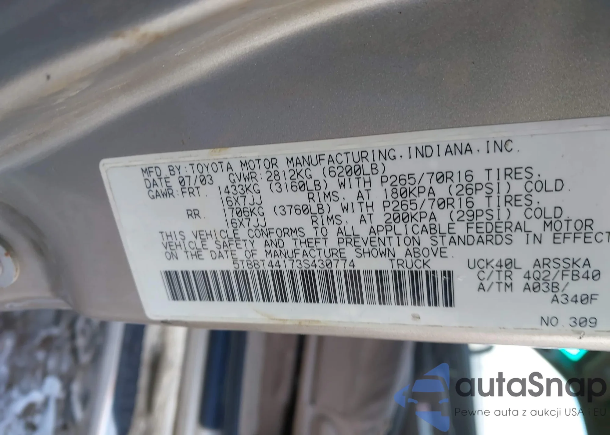 VIN: 5TBBT44173S430774