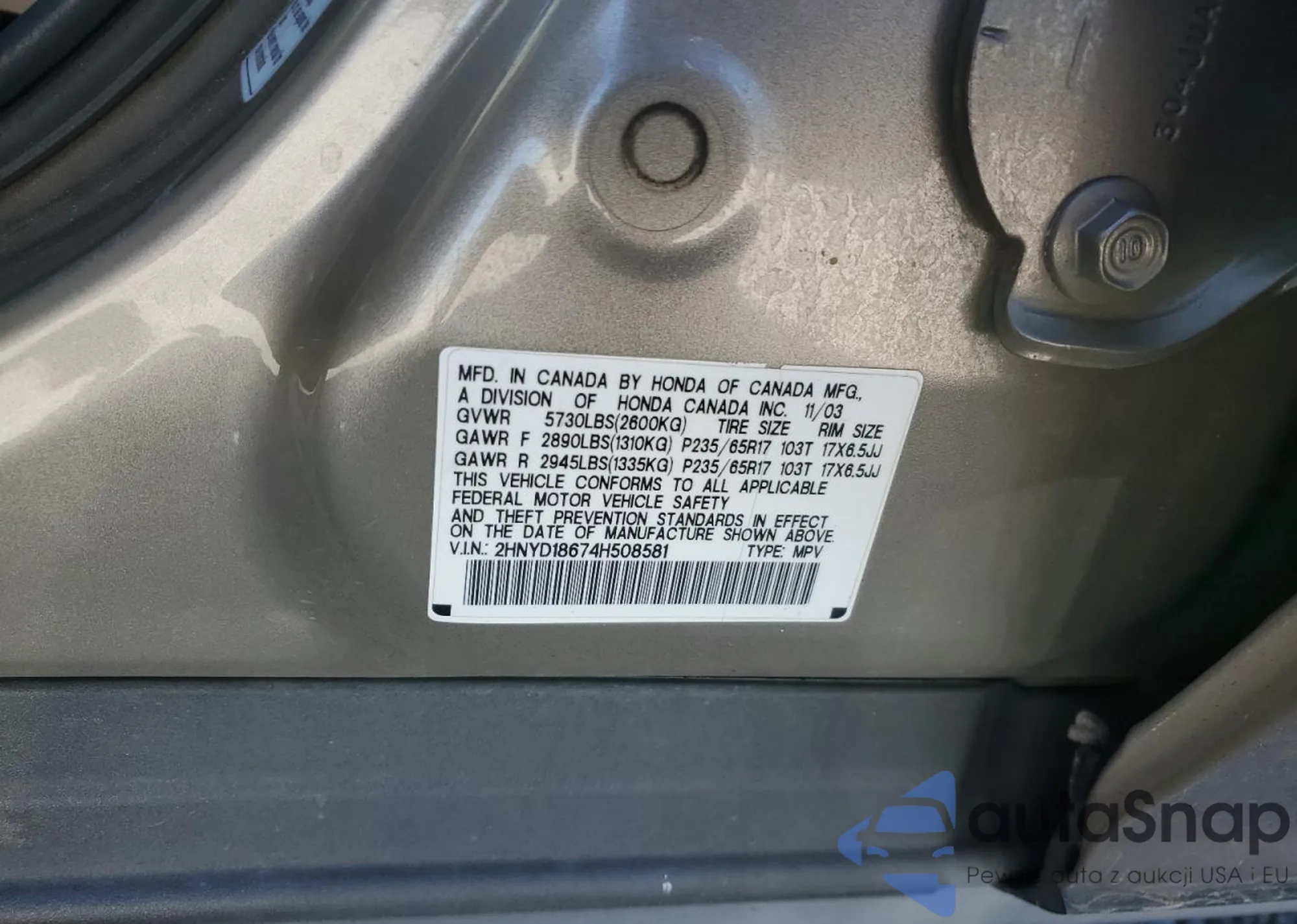 The car Acura MDX 2004 (VIN 2HNYD18674H508581) has not been auctioned before. The documents are clean, and the mileage matches or is below the market average. Sold by an insurance company – we recommend purchase. Delivery to the port will take approx. 6–8 weeks.