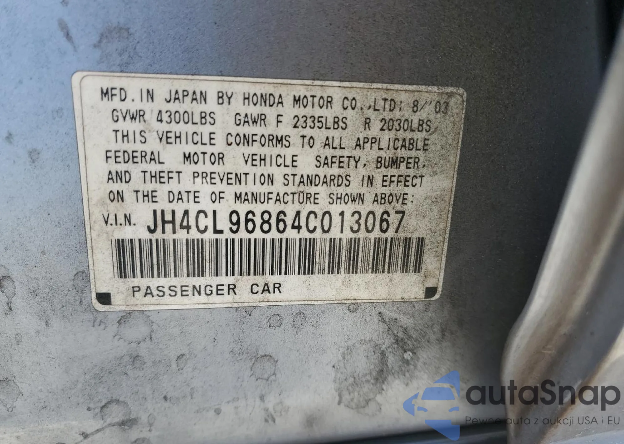 VIN: JH4CL96864C013067