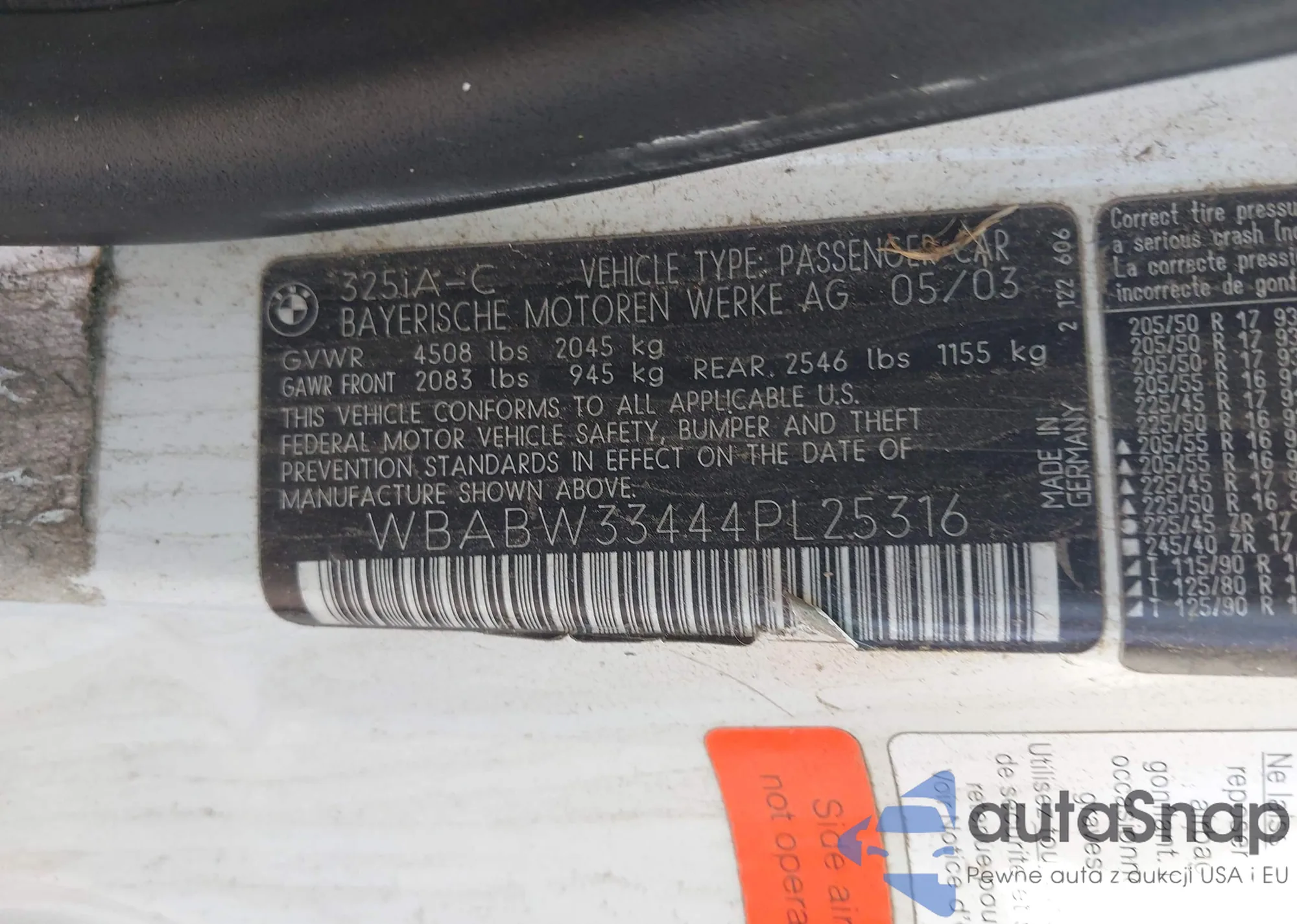VIN: WBABW33444PL25316