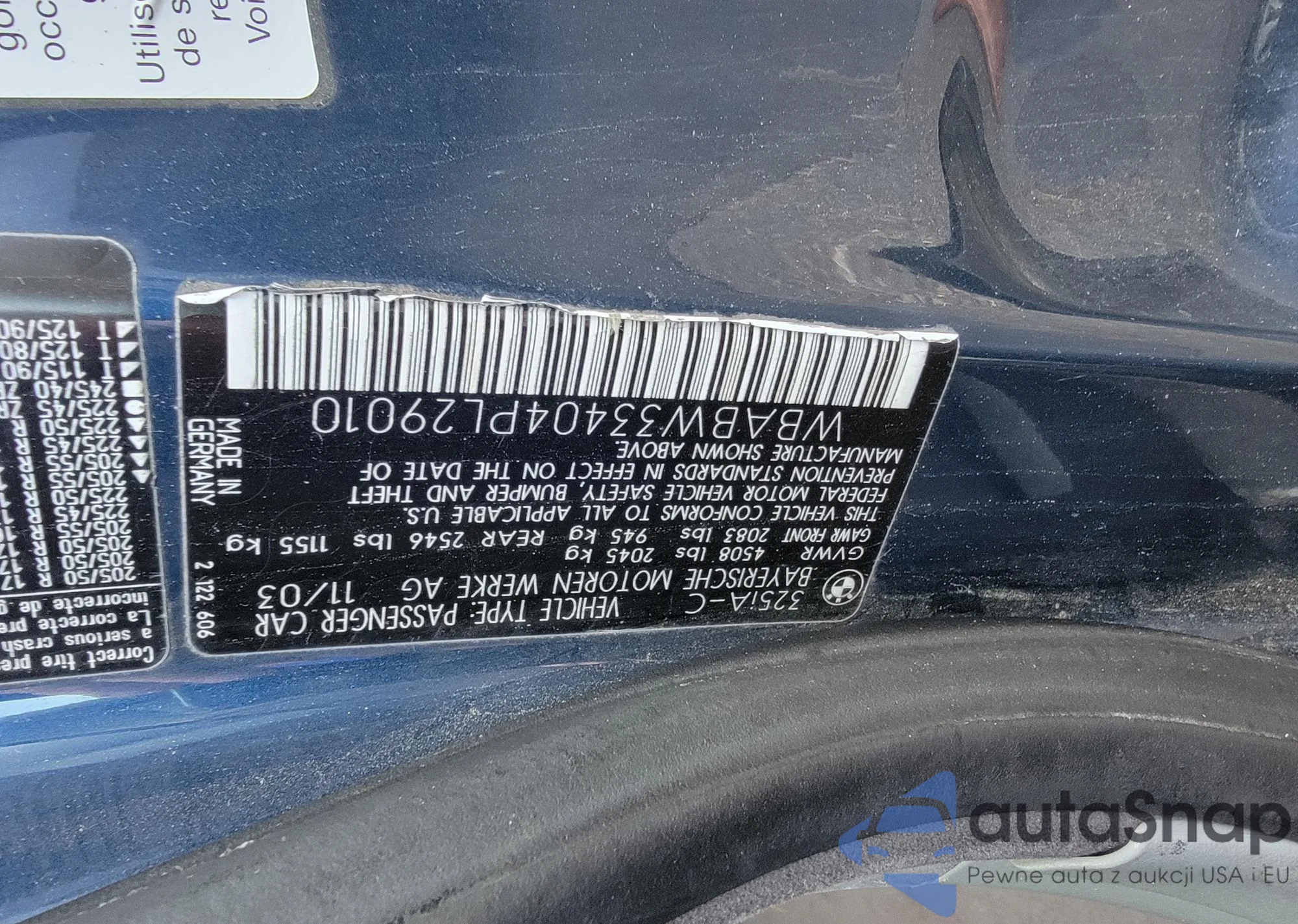 The car BMW 3er 2004 (VIN WBABW33404PL29010) is sold by an unverified seller. We recommend checking the Carfax report and confirming registration possibilities before purchase.