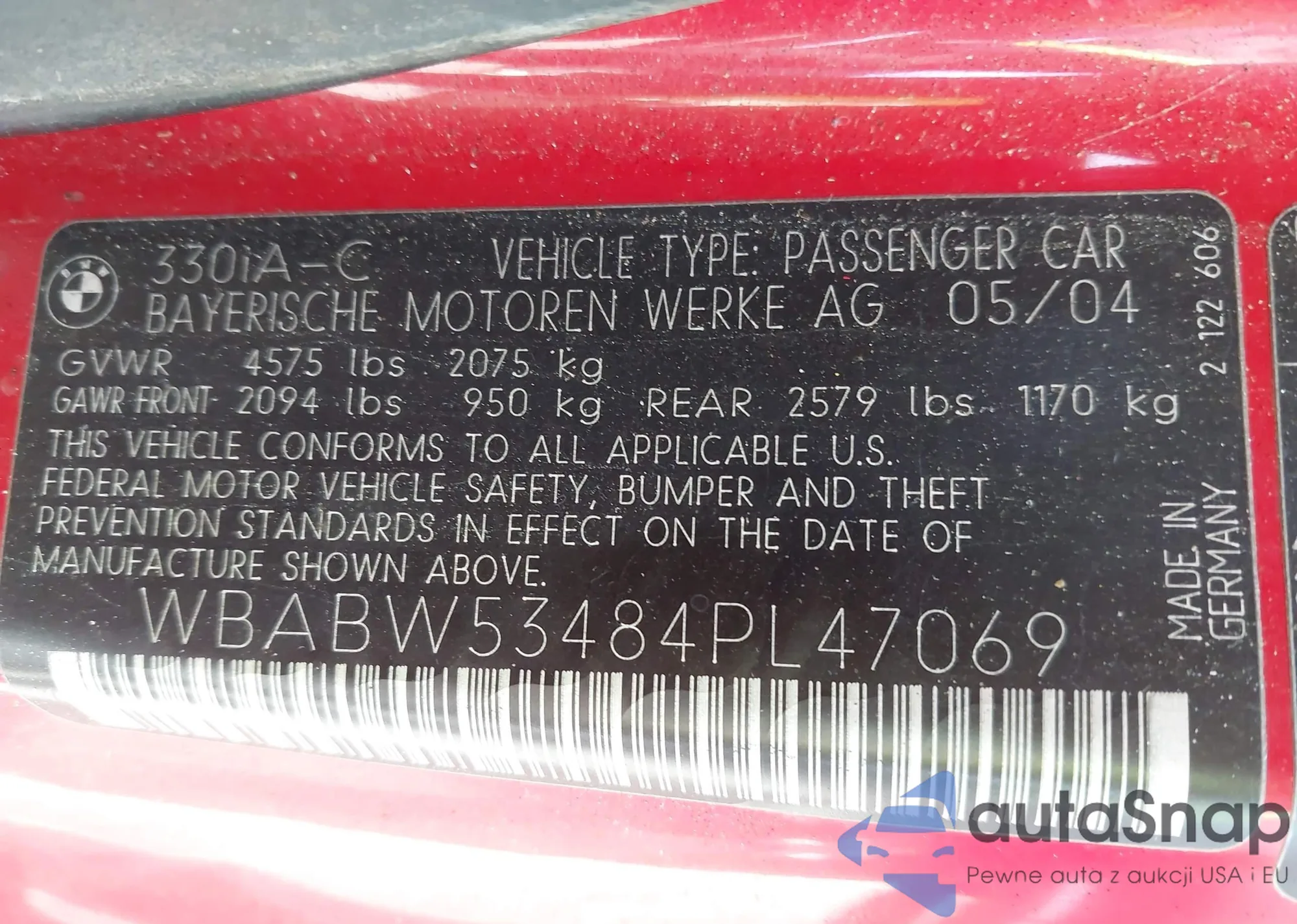The car BMW 3er 2004 (VIN WBABW53484PL47069) is sold by an unverified seller. We recommend checking the Carfax report and confirming registration possibilities before purchase.