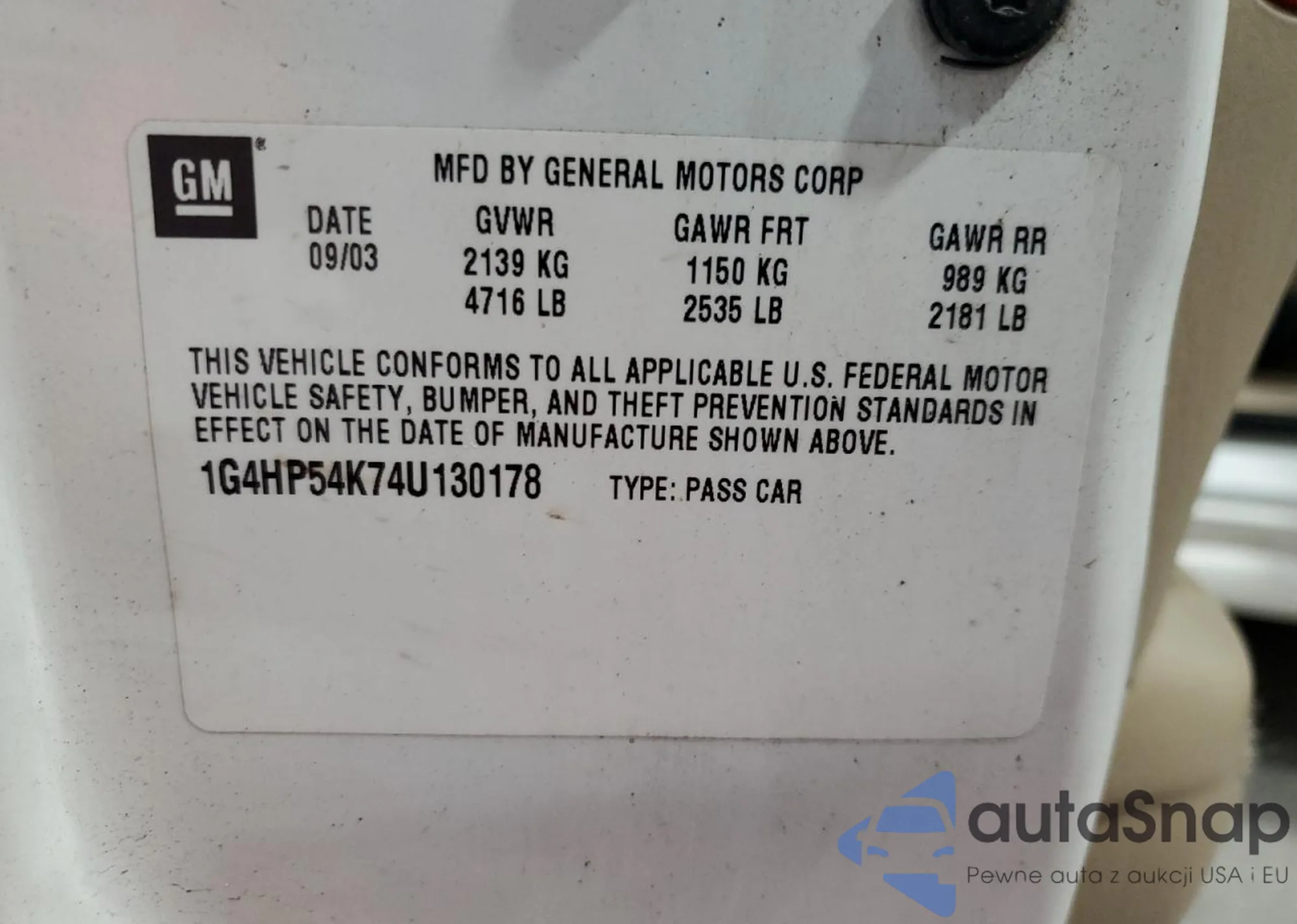 The car Buick LeSabre 2004 (VIN 1G4HP54K74U130178) has not been auctioned before. The documents are clean, and the mileage matches or is below the market average. Sold by an insurance company – we recommend purchase. Delivery to the port will take approx. 6–8 weeks.