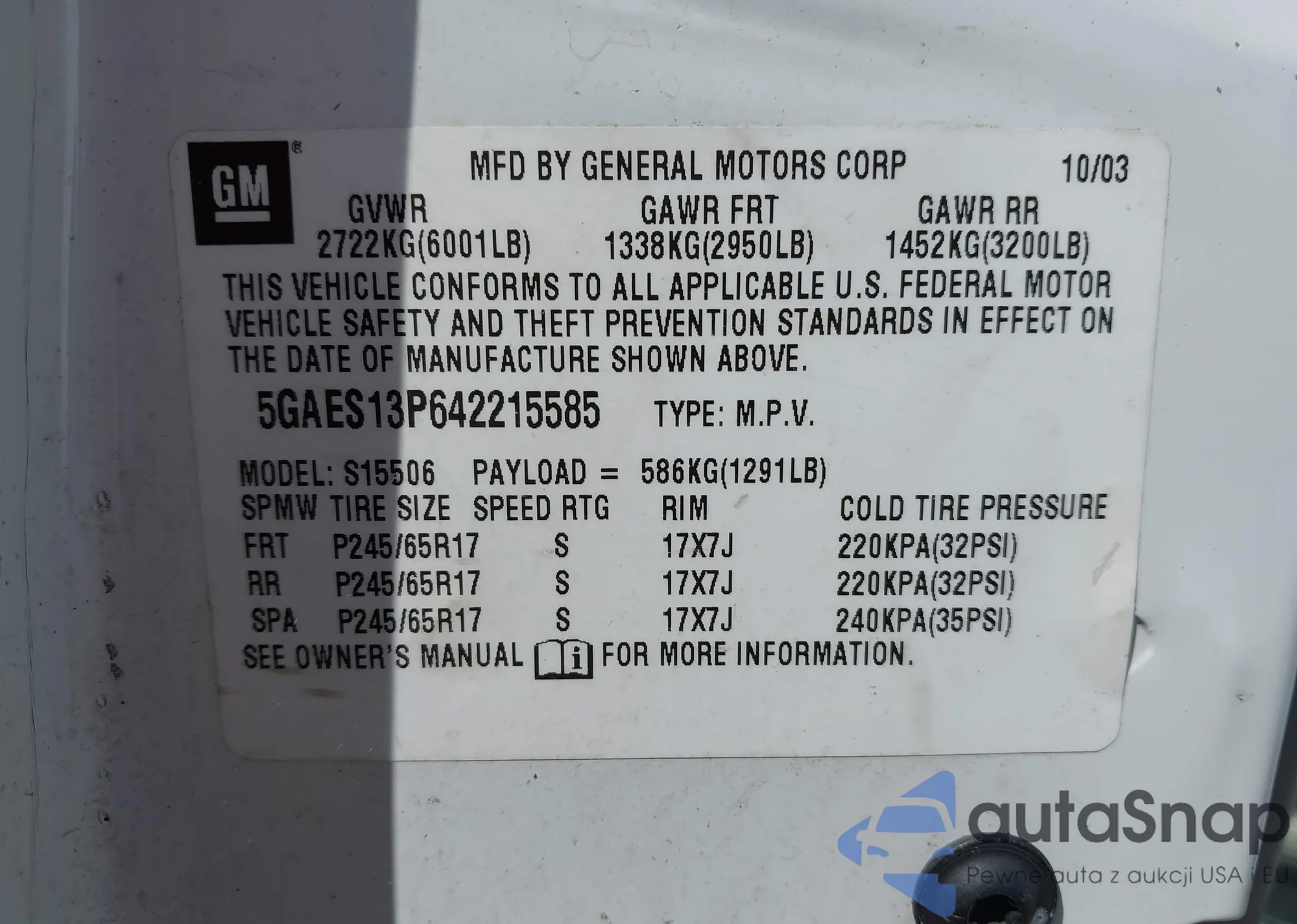 VIN: 5GAES13P642215585