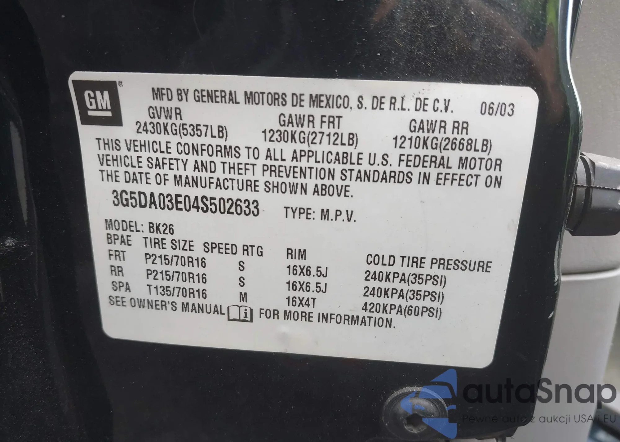 The car Buick Rendezvous 2004 (VIN 3G5DA03E04S502633) is sold by an unverified seller. We recommend checking the Carfax report and confirming registration possibilities before purchase.