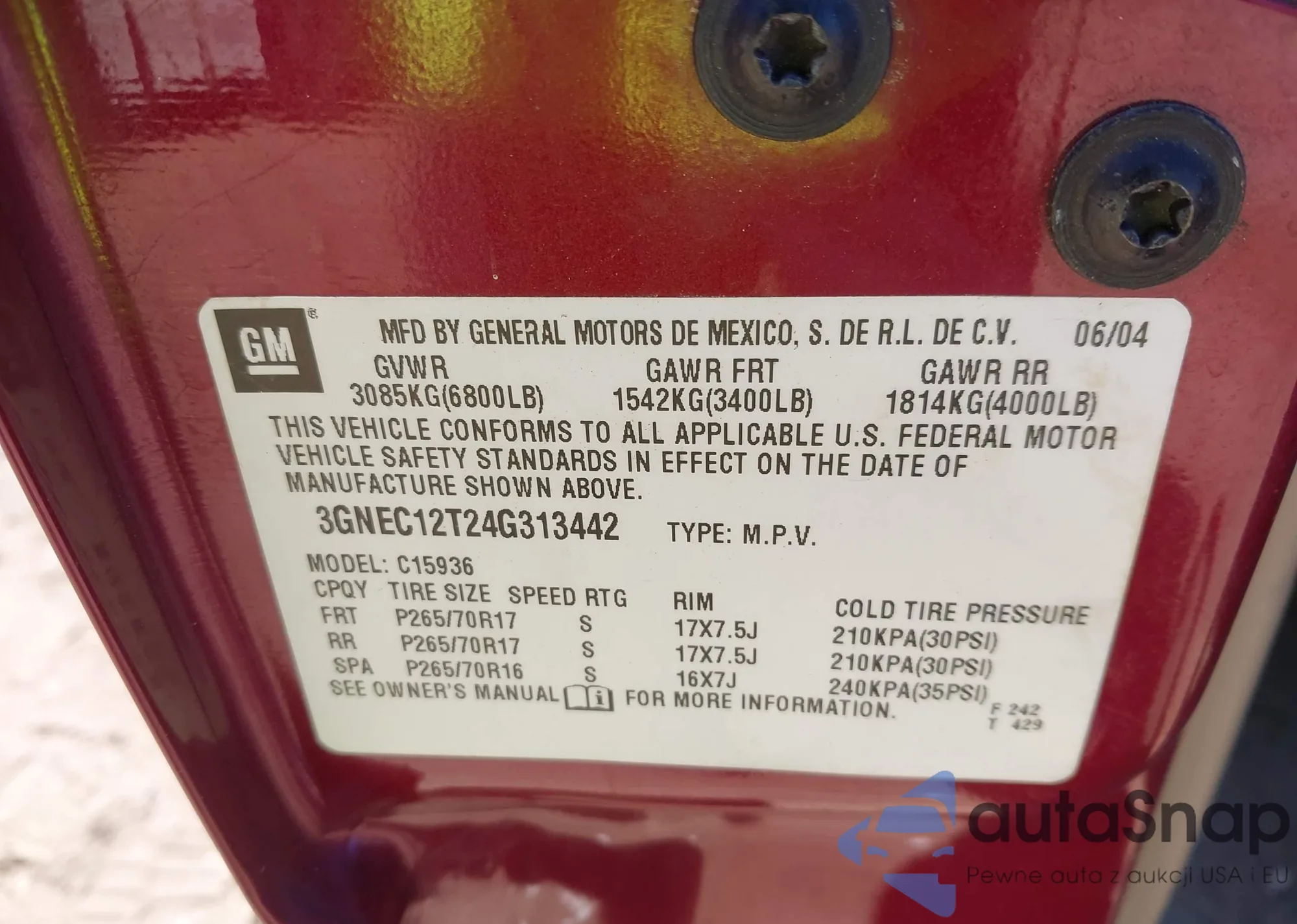 VIN: 3GNEC12T24G313442
