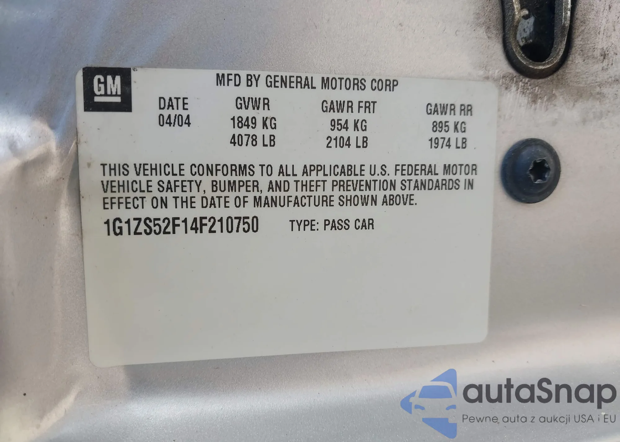VIN: 1G1ZS52F14F210750