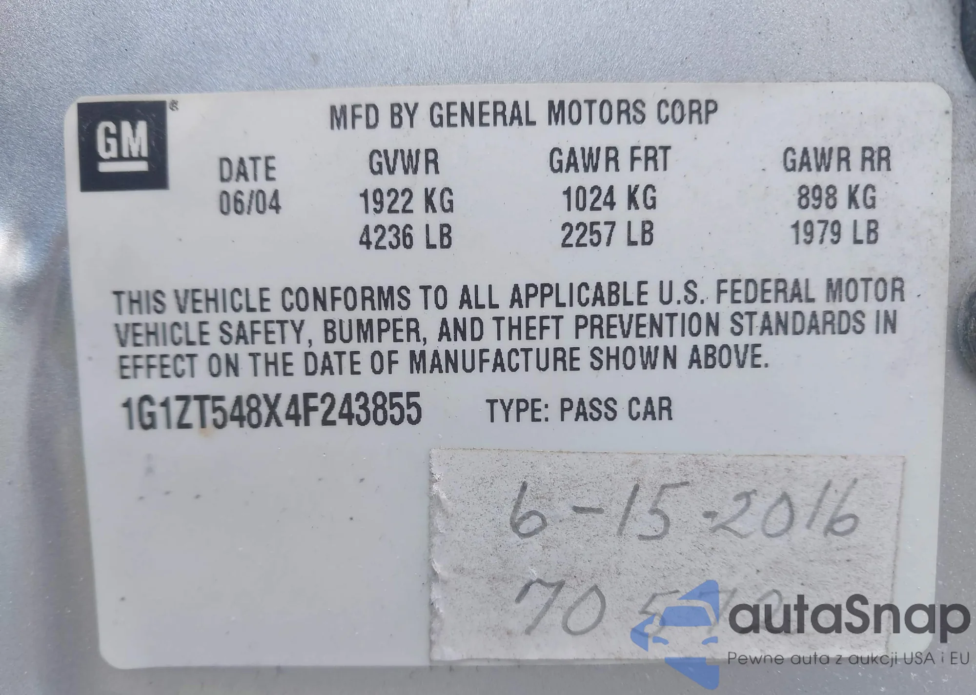 The car Chevrolet Malibu 2004 (VIN 1G1ZT548X4F243855) has not been auctioned before. The documents are clean, and the mileage matches or is below the market average. Sold by an insurance company – we recommend purchase. Delivery to the port will take approx. 6–8 weeks.