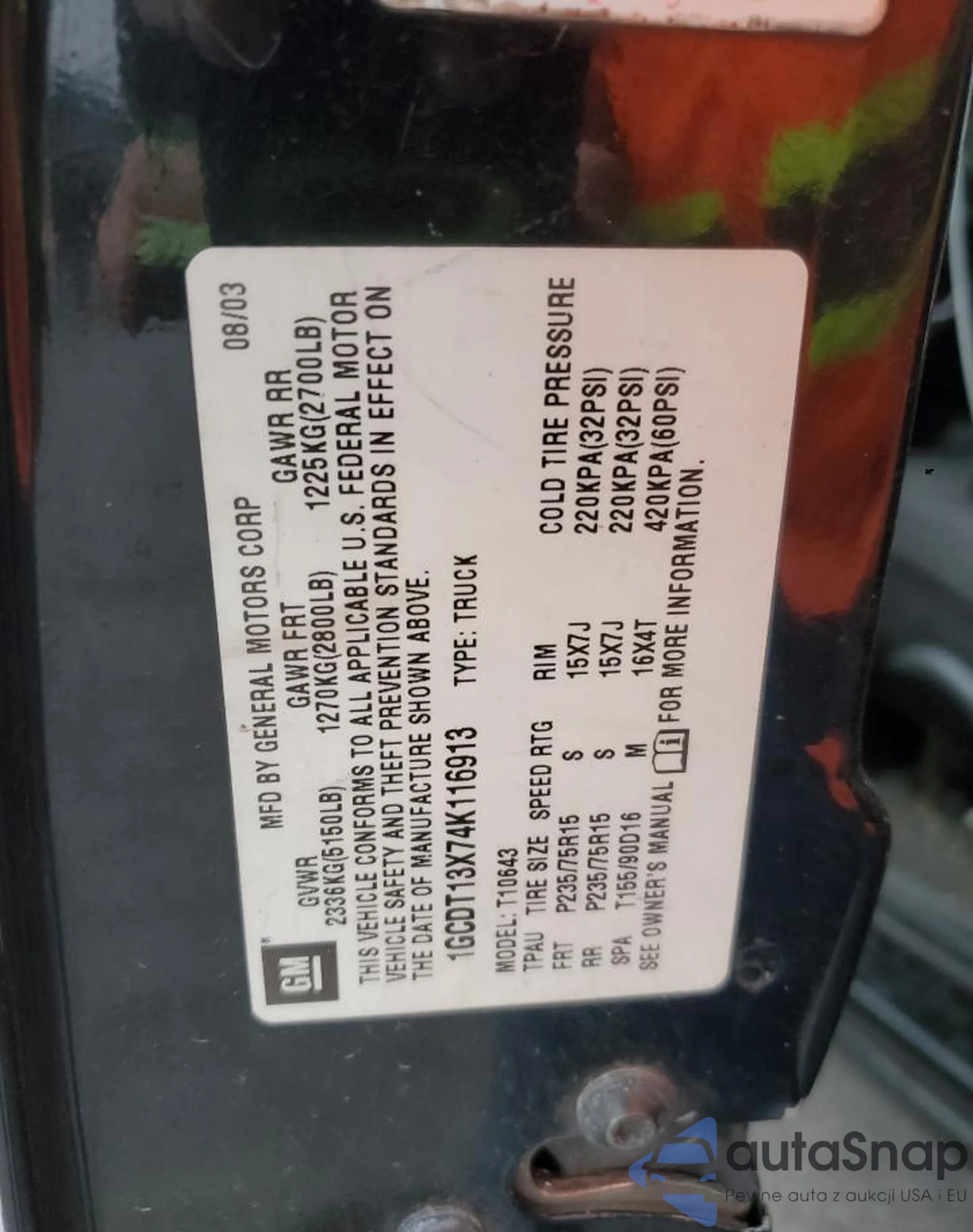 The car Chevrolet S-10 Pickup 2004 (VIN 1GCDT13X74K116913) has not been auctioned before. The documents are clean, and the mileage matches or is below the market average. Sold by an insurance company – we recommend purchase. Delivery to the port will take approx. 6–8 weeks.