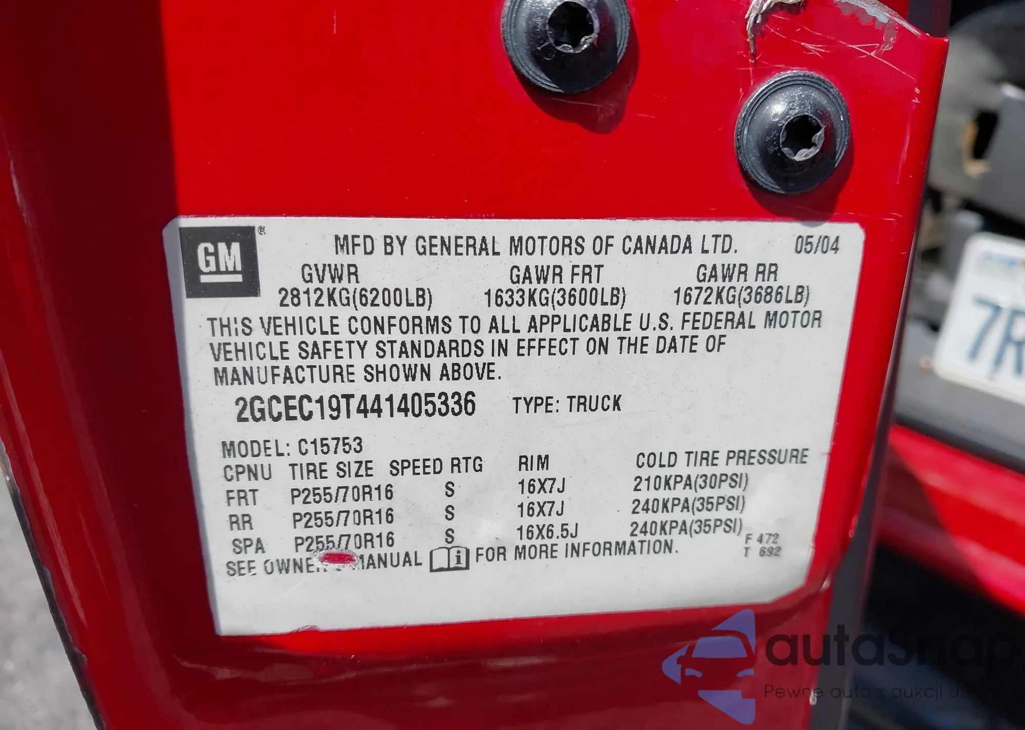 VIN: 2GCEC19T441405336
