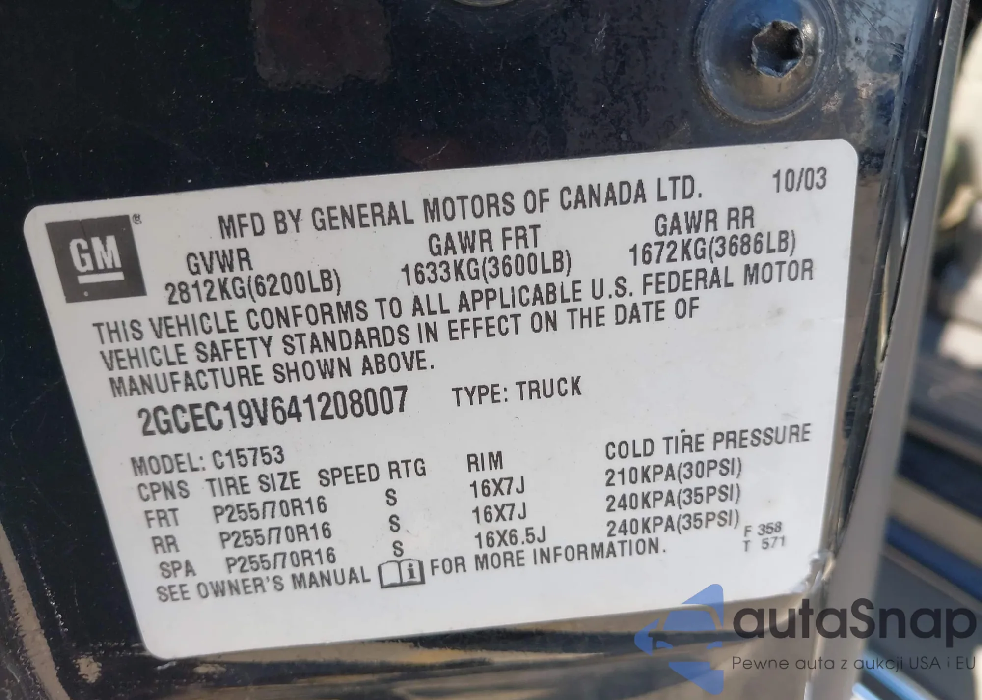 VIN: 2GCEC19V641208007