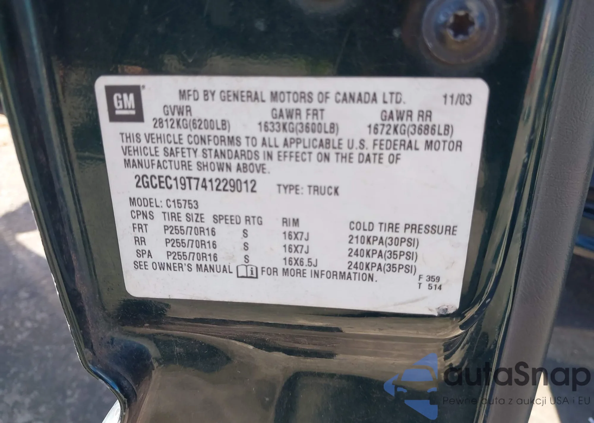 VIN: 2GCEC19T741229012