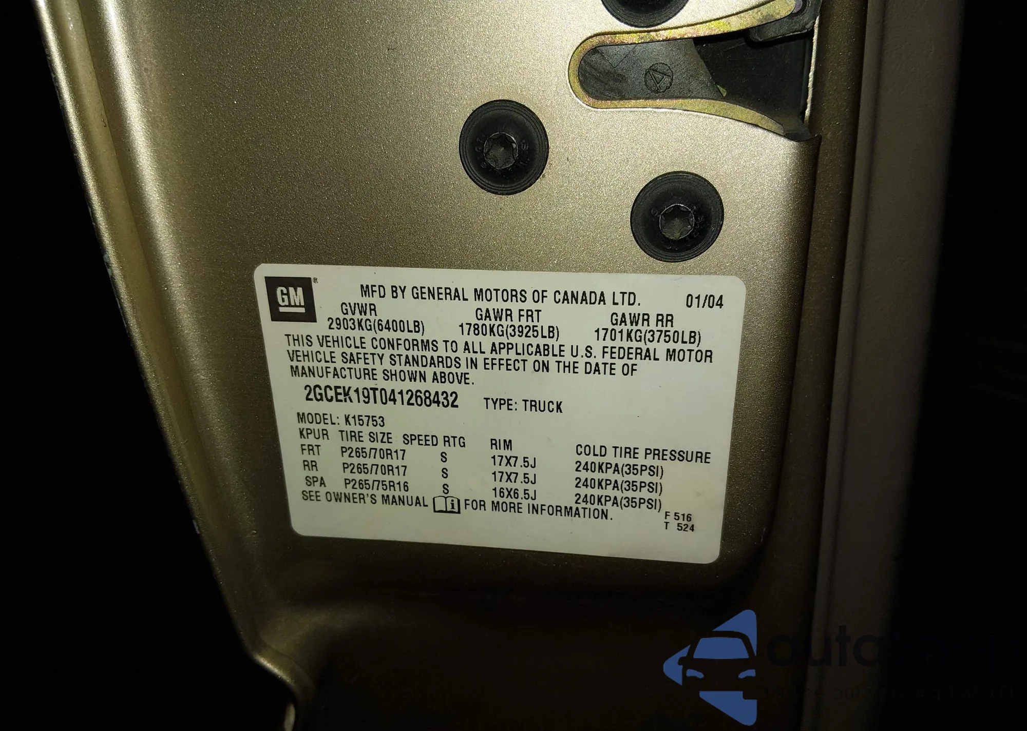 VIN: 2GCEK19T041268432