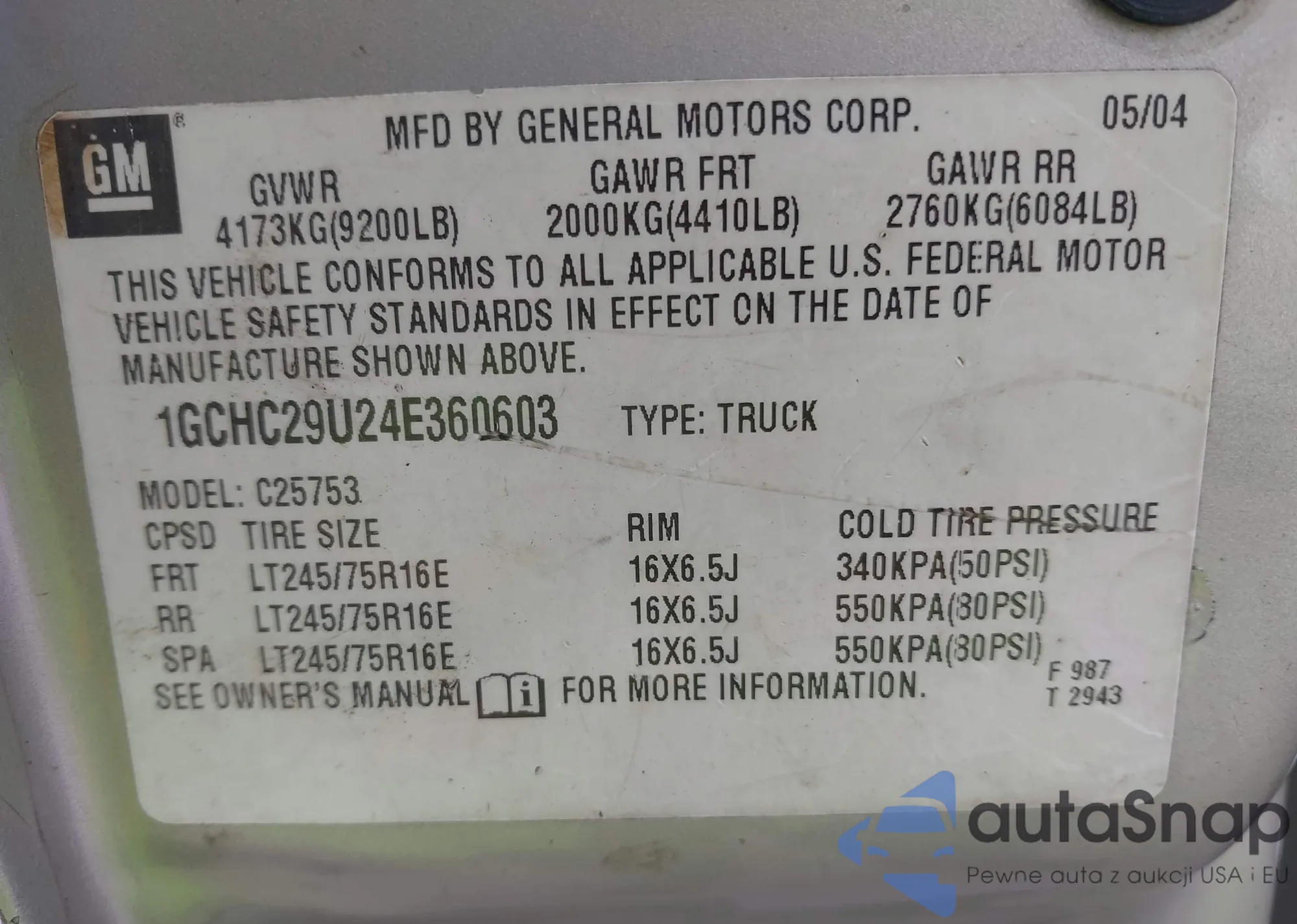• VIN: 1GCHC29U24E360603