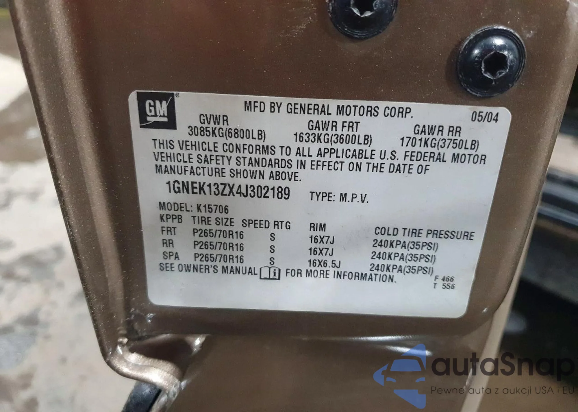 VIN: 1GNEK13ZX4J302189